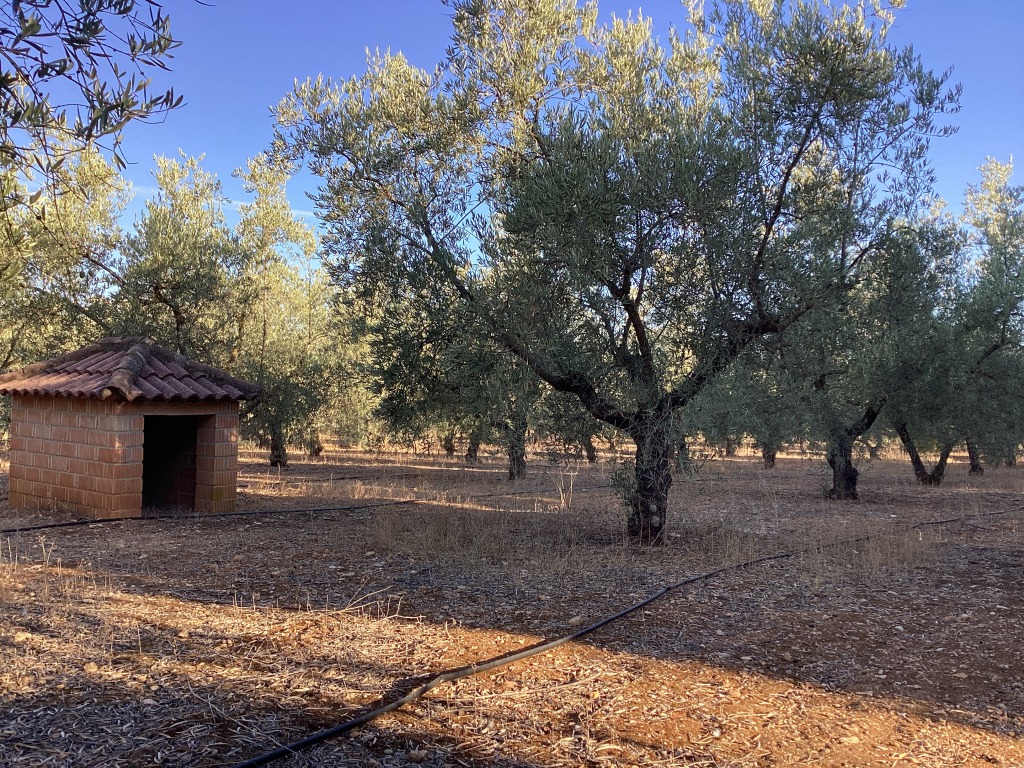 El resto de la finca se compone de un EXTENSO TERRENO (3.780 m2) aún sin construir (salvo por una casita para nuestro perro) con una tierra muy fértil en el que ahora mismo hay un gran olivar que este año ha dado una gran cosecha de aceitunas y un aceite de oliva exquisito, huerto y distintos árboles frutales.
