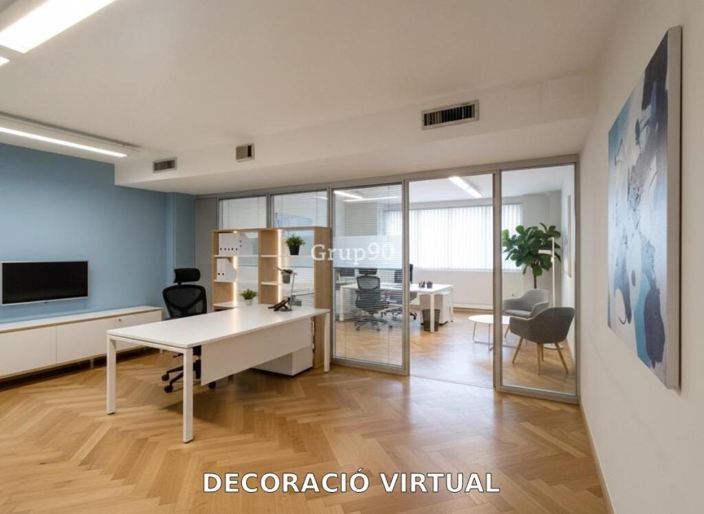 Presentamos esta espectacular oficina ubicada en el renombrado edificio Euroforum, un centro de oficinas de prestigio situado en el corazón de Lleida. Ideal para empresas que buscan una ubicación céntrica y representativa.Características del Edificio:- Conserje en portería: Seguridad y atención personalizada para ti y tus clientes.- 2 Ascensores: Comodidad y rapidez para el acceso a las oficinas.- Amplio Parking de Alquiler: Facilita el estacionamiento con plazas disponibles en el mismo edificio.Detalles de la Oficina:- Superficie: Más de 176.95 m2 distribuidos inteligentemente.- Gran Sala Diáfana: Ideal para adaptar a tus necesidades de espacio abierto.- Sala de Reuniones y Despacho: Espacios independientes para mayor privacidad.- Recepción con Espacio de Trabajo: Un área funcional para recibir a tus clientes.- Gran Hall de Entrada: Una entrada impactante que da la bienvenida a tus visitantes.- 2 Baños: Comodidad y funcionalidad para tu equipo.Flexibilidad:- Espacio Adaptable: Si lo prefieres, la oficina puede convertirse fácilmente en un solo espacio diáfano.Detalles Adicionales:- Muebles de Alto Standing: Uno de los subespacios está completamente amueblado con mobiliario de alta calidad.- Climatización: Bomba de calor para mantener un ambiente agradable tanto en verano como en invierno.Ubicación:Situado en el centro de Lleida, este edificio ofrece una ubicación estratégica, cercana a todos los servicios y con excelente conectividad.¡No pierdas esta oportunidad de establecer tu empresa en una de las mejores ubicaciones de Lleida! Contáctanos para más información y para agendar una visita.Aviso sobre las imágenes: Las fotos marcadas como “DECORACIÓN VIRTUAL” han sido editadas digitalmente con IA para mostrar una posible reforma o decoración. Son únicamente orientativas y no representan el estado actual de la vivienda.