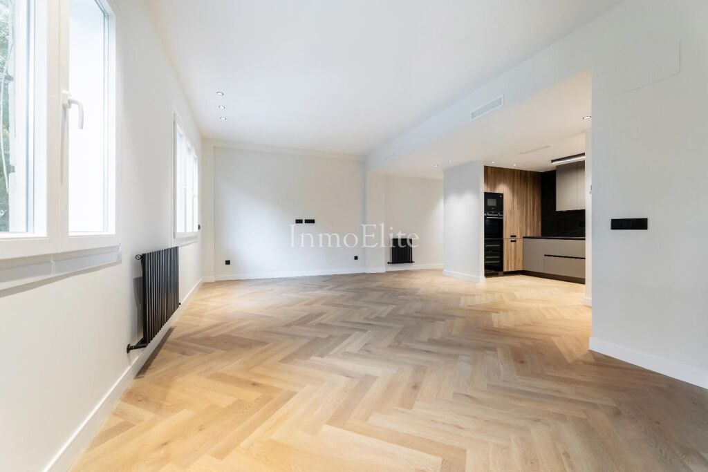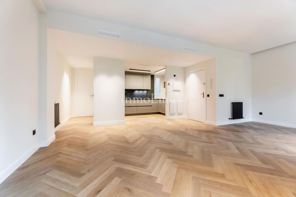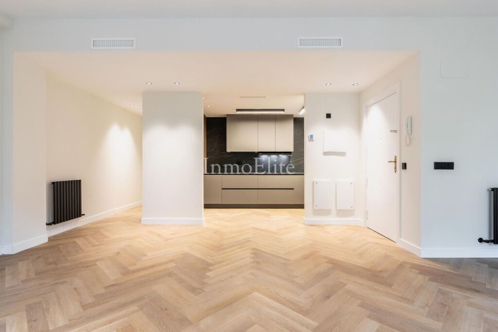InmoElite presenta un MAGNIFICO PISO EXTERIOR TOTALMENTE REFORMADO.Descubre este espectacular inmueble de 140 m² construidos totalmente reformado, ubicado en una de las más prestigiosas zonas de la Capital, Chamberí, en el barrio de Trafalgar.Situado en una finca señorial de mediados de Siglo, este piso totalmente exterior cuenta con 3 habitaciones, 3 baños y cuarto de lavandería, destacando por su abundante luz natural y creando un ambiente cálido y acogedor. La vivienda está siendo reformada con materiales de alta calidad y con acabados y detalles de lujo. Al entrar nos encontramos con una bonita cocina amueblada abierta al salón y con posibilidad de ser cerrada si así se desea, convirtiéndose en un lugar funcional y agradable para disfrutar en familia o con amigos. Gran salón - comedor con estupenda luz natural gracias a sus amplios ventanales con vistas totalmente despejadas y aseo.En la zona de descanso, nos encontramos con una preciosa Suite con vestidor y cuarto de baño exterior con plato de ducha. A continuación, encontramos 2 dormitorios con armarios empotrados totalmente vestidos, un cuarto de baño con plato de ducha para dar servicio a estas estancias y cuarto de lavandería para lavadora y secadora. Además, está equipada con calefacción de gas natural y aire acondicionado canalizado en todas las estancias con sistema "Airzone".