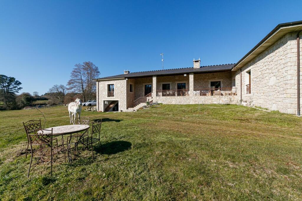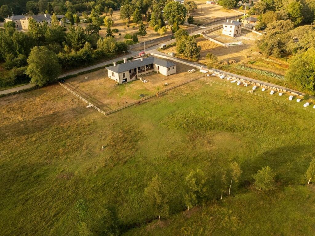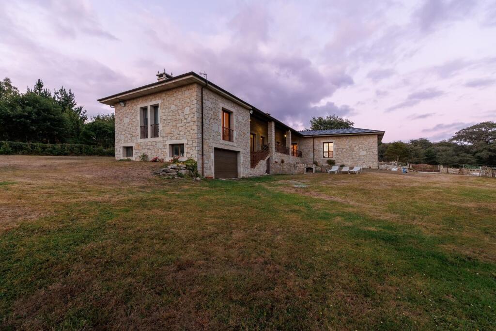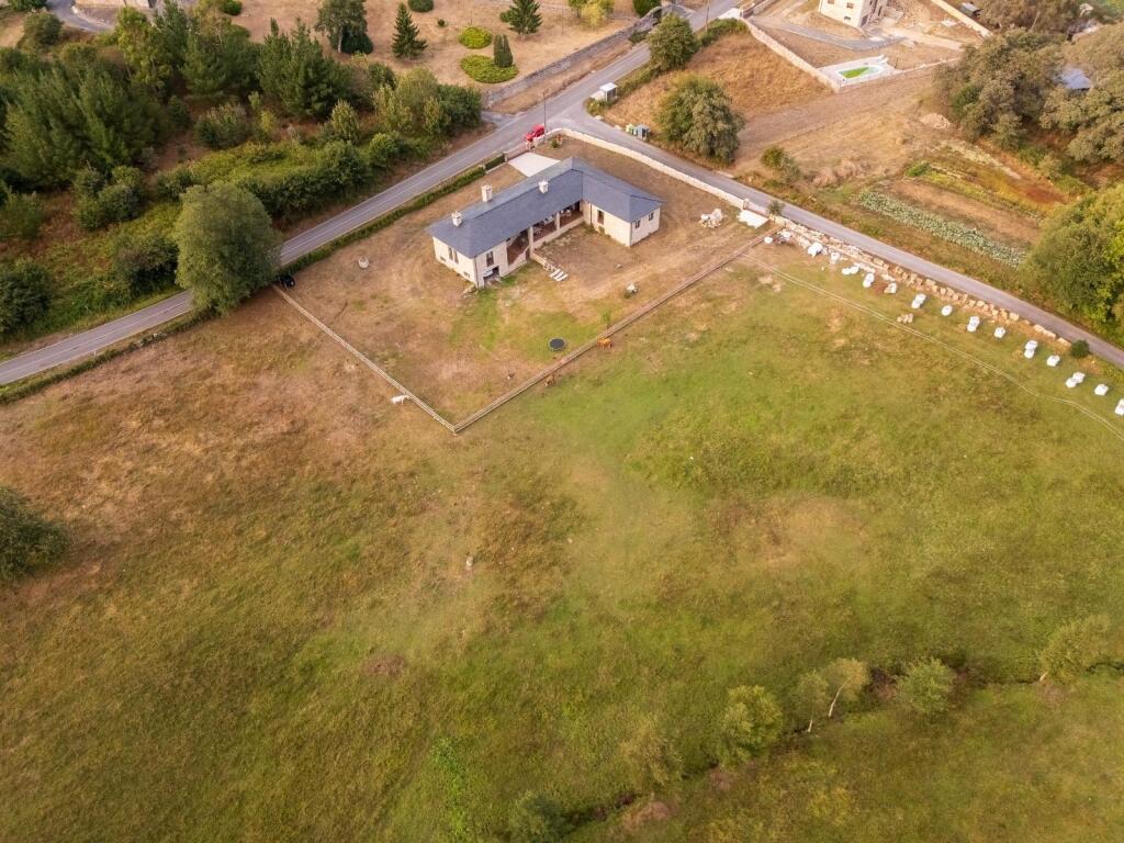 En la provincia de Lugo, en pleno corazón de Friol, nos encontramos con éste precioso Chalet construido en piedra natural de mampostería del país, se encuentra ubicado en el núcleo rural de Camoiras, consta de un semisótano y una planta, todo ello en una superficie de 420 m2 construidos dentro de una parcela de 5000 m2.Accedemos a la propiedad desde un bonito porche delantero, en el cuál disfrutaremos de los mejores atardeceres de la comarca, desde éste porche nos adentramos en un amplio hall, el cuál distribuye la propiedad en dos alas. El ala izquierda se divide en cuatro estancias, un cómodo y espacioso dormitorio principal con un baño completo, provisto de dos piletas para más comodidad y plato de ducha, dos habitaciones independientes y un baño completo para dar servicio a éstas dos estancias.Pasamos al ala derecha a través del hall y nos encontramos con un grandioso e imponente salón comedor, el cuál según entramos nos llama la atención la excepcional chimenea de piedra que lidera la estancia, dentro de ésta diferenciamos dos ambientes, la zona de comedor con una amplia mesa de madera natural acorde a la decoración, dónde podrán comer cómodamente hasta ocho comensales y la zona de descanso con varios sofás para uso y disfrute de una sobremesa, una siesta o simplemente descansar.Desde el salón accedemos a través de una gran puerta a la deslumbrante y luminosa cocina en la cuál distinguiremos la extraordinaria isla central, construida toda ella en mármol blanco, en ésta tenemos incrustada una vitrocerámica de 90 cms y una cocina de hierro alimentada con leña dónde podremos cocinar estupendos asados y a su vez nos aportará calefacción, ésta estupenda isla también nos dará servicio cómo mesa para comer ya que dispone de una gran bancada posterior en madera natural con capacidad para unos doce comensales y nos da la comodidad de poder estar cocinando directamente casi sobre la mesa. Desde la cocina y el salón tenemos acceso a través de dos grandes ventanales al porche trasero desde dónde nos deleitaremos con las vistas despejadas a la finca, distinguimos dos ambientes, una de descanso con unos bonitos sillones de mimbre y cómodos cojines y la otra zona se destina a comedor con una preciosa mesa de forja y sus correspondientes sillas.El ala derecha se divide en cuatro estancias, una habitación provista de un baño completo, una despensa totalmente equipada con estanterías hasta el techo para un amplio almacenamiento, una estancia destinada a lavandería y otra destinada a sala de calderas. Desde éste ala derecha tenemos acceso mediante unas escaleras al amplio semisótano el cual tiene capacidad para varios coches. En ambos porches, los techos están forrados en madera natural, todos los dormitorios tienen sus armarios empotrados destacando sobre todos el del dormitorio principal con diez puertas, los suelos de toda la casa son de terrazo rústico y dispone de calefacción a gasoil en todas las estancias, la propiedad está decorada toda ella con maderas nobles y piedra natural, un combo ganador siempre que nos aporta calidez de hogar.Desde la propiedad nos encontramos a 14kms de la ciudad de Lugo con origen romano y catalogada cómo la ciudad más antigua de Galicia, la cuál nos brindará todos los servicios necesarios en nuestro día a día. A 80kms está la capital de Galicia, Santiago de Compostela, a 130kms está la ciudad de Vigo, a 90kms Coruña. En el radio de 130kms disponemos de los tres aeropuertos gallegos.¿¿Estás pensando en cambiar tu residencia a un entorno rodeado de naturaleza?? Porque si es así, ésta es tu propiedad, sólo destinada a unos pocos privilegiados. Una propiedad dónde se parará el tiempo, dónde disfrutarás de la naturaleza libremente. ¿¿A que esperas para conocerla?? Llámanos y concierta una visita, te enamorarás de ella y de su entorno!!!