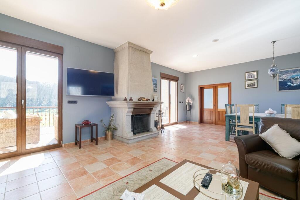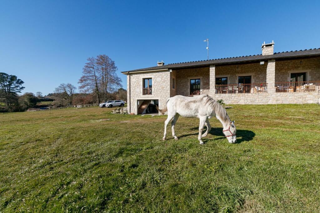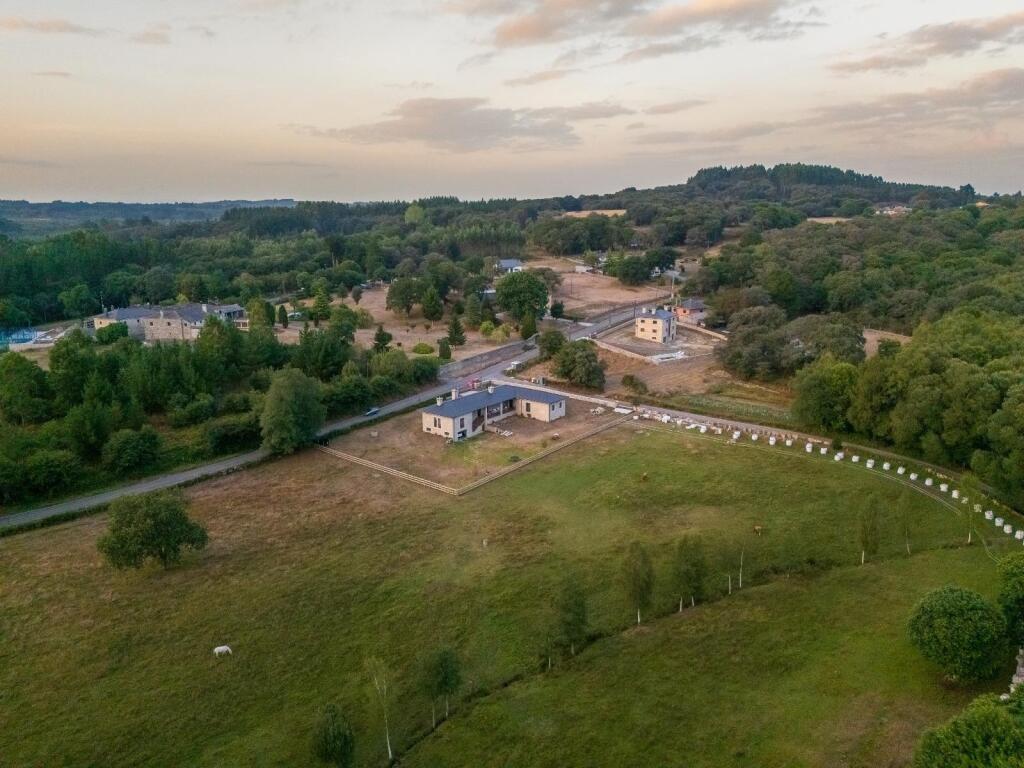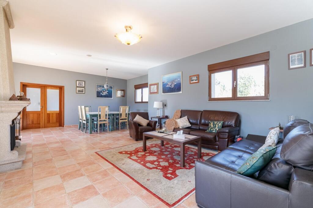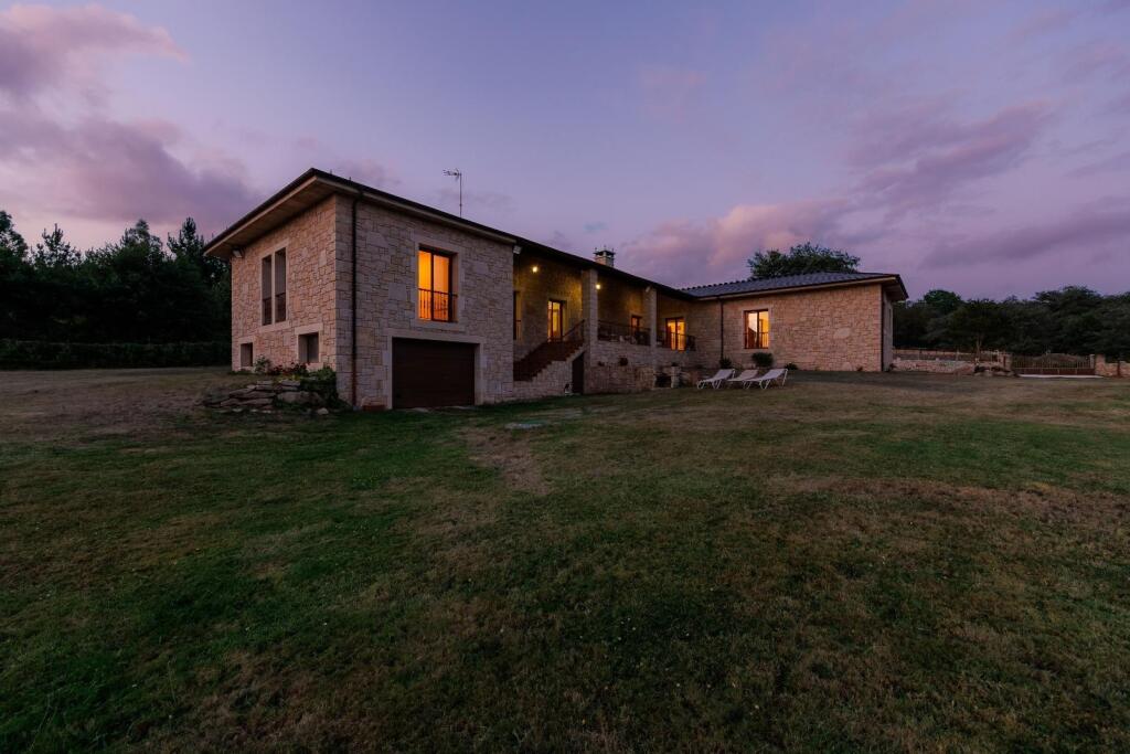 En la provincia de Lugo, en pleno corazón de Friol, nos encontramos con éste precioso Chalet construido en piedra natural de mampostería del país, se encuentra ubicado en el núcleo rural de Camoiras, consta de un semisótano y una planta, todo ello en una superficie de 420 m2 construidos dentro de una parcela de 5000 m2.Accedemos a la propiedad desde un bonito porche delantero, en el cuál disfrutaremos de los mejores atardeceres de la comarca, desde éste porche nos adentramos en un amplio hall, el cuál distribuye la propiedad en dos alas. El ala izquierda se divide en cuatro estancias, un cómodo y espacioso dormitorio principal con un baño completo, provisto de dos piletas para más comodidad y plato de ducha, dos habitaciones independientes y un baño completo para dar servicio a éstas dos estancias.Pasamos al ala derecha a través del hall y nos encontramos con un grandioso e imponente salón comedor, el cuál según entramos nos llama la atención la excepcional chimenea de piedra que lidera la estancia, dentro de ésta diferenciamos dos ambientes, la zona de comedor con una amplia mesa de madera natural acorde a la decoración, dónde podrán comer cómodamente hasta ocho comensales y la zona de descanso con varios sofás para uso y disfrute de una sobremesa, una siesta o simplemente descansar.Desde el salón accedemos a través de una gran puerta a la deslumbrante y luminosa cocina en la cuál distinguiremos la extraordinaria isla central, construida toda ella en mármol blanco, en ésta tenemos incrustada una vitrocerámica de 90 cms y una cocina de hierro alimentada con leña dónde podremos cocinar estupendos asados y a su vez nos aportará calefacción, ésta estupenda isla también nos dará servicio cómo mesa para comer ya que dispone de una gran bancada posterior en madera natural con capacidad para unos doce comensales y nos da la comodidad de poder estar cocinando directamente casi sobre la mesa. Desde la cocina y el salón tenemos acceso a través de dos grandes ventanales al porche trasero desde dónde nos deleitaremos con las vistas despejadas a la finca, distinguimos dos ambientes, una de descanso con unos bonitos sillones de mimbre y cómodos cojines y la otra zona se destina a comedor con una preciosa mesa de forja y sus correspondientes sillas.El ala derecha se divide en cuatro estancias, una habitación provista de un baño completo, una despensa totalmente equipada con estanterías hasta el techo para un amplio almacenamiento, una estancia destinada a lavandería y otra destinada a sala de calderas. Desde éste ala derecha tenemos acceso mediante unas escaleras al amplio semisótano el cual tiene capacidad para varios coches. En ambos porches, los techos están forrados en madera natural, todos los dormitorios tienen sus armarios empotrados destacando sobre todos el del dormitorio principal con diez puertas, los suelos de toda la casa son de terrazo rústico y dispone de calefacción a gasoil en todas las estancias, la propiedad está decorada toda ella con maderas nobles y piedra natural, un combo ganador siempre que nos aporta calidez de hogar.Desde la propiedad nos encontramos a 14kms de la ciudad de Lugo con origen romano y catalogada cómo la ciudad más antigua de Galicia, la cuál nos brindará todos los servicios necesarios en nuestro día a día. A 80kms está la capital de Galicia, Santiago de Compostela, a 130kms está la ciudad de Vigo, a 90kms Coruña. En el radio de 130kms disponemos de los tres aeropuertos gallegos.¿¿Estás pensando en cambiar tu residencia a un entorno rodeado de naturaleza?? Porque si es así, ésta es tu propiedad, sólo destinada a unos pocos privilegiados. Una propiedad dónde se parará el tiempo, dónde disfrutarás de la naturaleza libremente. ¿¿A que esperas para conocerla?? Llámanos y concierta una visita, te enamorarás de ella y de su entorno!!!