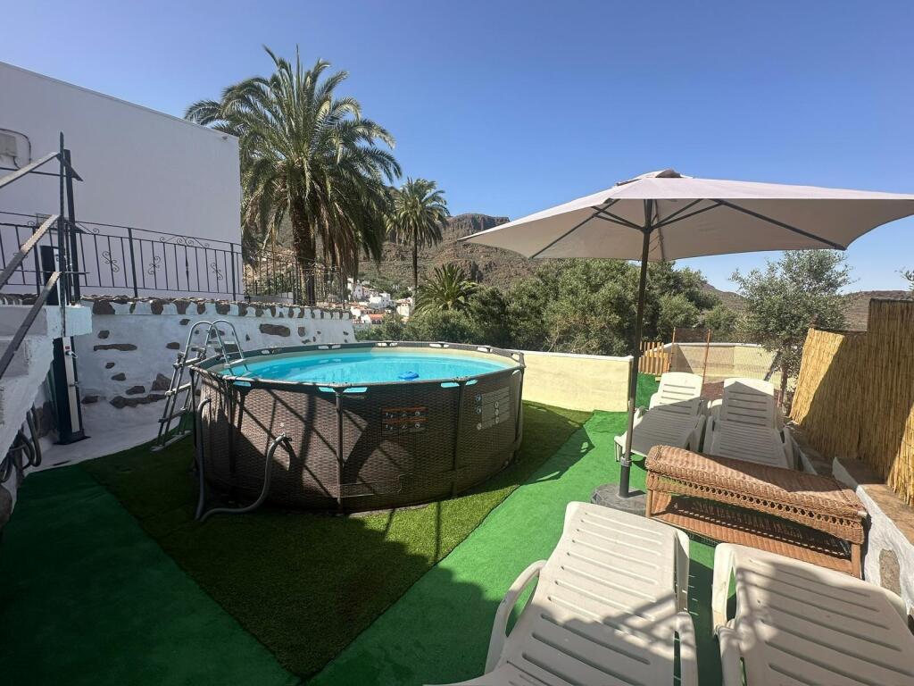 Green Palm te ofrece una oportunidad única de adquirir una vivienda con personalidad y encanto, ubicada en uno de los enclaves más tranquilos y bellos del sureste de Gran Canaria: Temisas, en el municipio de Agüimes. Rodeado de montañas, senderos y cielos despejados, este pequeño pueblo es ideal para quienes desean una vida en conexión con la naturaleza, sin renunciar a las comodidades.La propiedad cuenta con aproximadamente 175 m, distribuidos en dos plantas independientes con acceso desde la calle, y se asienta sobre una estructura tradicional con techos de madera, paredes de piedra y detalles rústicos que conservan el carácter típico de la arquitectura canaria.La planta alta ofrece un ambiente acogedor y funcional. Al entrar, te recibe un patio exterior que da paso a la cocina-comedor, una solana con aseo y una impresionante azotea de unos 50 m2, perfecta para relajarse al aire libre, disfrutar del buen clima o compartir momentos con familia y amigos.En la planta inferior encontrarás tres dormitorios, un salón con chimenea, un baño completo con bañera y ducha, y un espacio multifuncional bajo la escalera, ideal como rincón de lectura, oficina o almacenamiento adicional.Desde esta planta accedes a una espectacular terraza de aproximadamente 140 m2, equipada con una habitación adicional, baño, cocina independiente, trastero y piscina Este espacio se adapta fácilmente como apartamento para invitados, zona de barbacoa, taller o incluso como alojamiento turístico.La casa dispone de aire acondicionado en varias estancias, asegurando el confort durante todo el año, tanto en verano como en los meses más frescos.Certificado de calificación energética en trámite.En el precio de venta del inmueble en cuestión no se encuentran incluidos los gastos de notaría, registro e impuestos que se pudieran derivar de su venta. Los datos expuestos son meramente orientativos y se encuentran sujetos a errores u omisiones involuntarias.Si necesita financiación, podemos ayudarle a conseguirla, realizamos un asesoramiento financiero personalizado, sin compromiso y gratuito. Comparamos entre varias entidades bancarias para obtener la mejores condiciones.