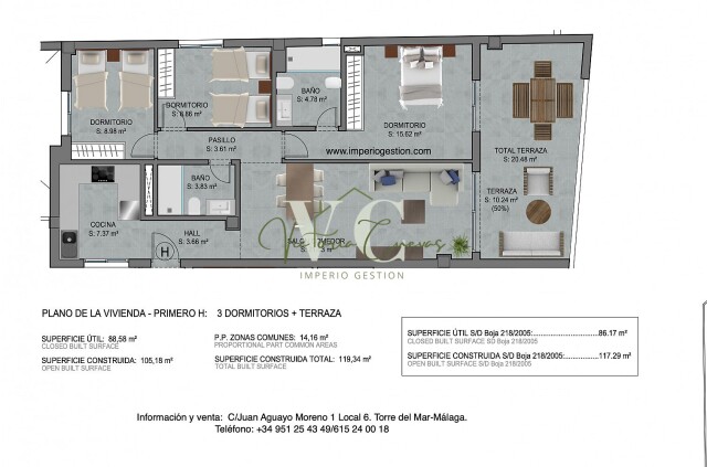 -VIVIENDA EN 1a PLANTA TIPO "H" ÚLTIMAS VIVIENDAS DISPONIBLES!!. Residencial "PALMERAL OASIS" le invita a disfrutar del confort y la tranquilidad de un desarrollo exclusivo de 40 viviendas con identidad propia y con una arquitectura impecable. Cuenta con amplias plantas bajas con jardín privado y áticos de ensueño. El proyecto cumple con los más exigentes niveles de calidad donde todos los detalles están muy cuidados. Residencial "PALMERAL OASIS" cuenta con ventajas como su proximidad a la playa, apenas 400m, servicios y comercios a pie de calle, colegios, institutos, centro comercial y una gran oferta gastronómica que nos dá el pueblo de Torre del Mar, Málaga. Rodeado de grandes avenidas, bulevares, parques y jardines donde podrá pasear, hacer deporte o tomar el sol todo el año. Características: - Viviendas de 3 dormitorios. - Urbanización privada exclusiva, con jardines y piscina panorámica sin fín, donde podrá disfrutar de un baño con unas preciosas vistas al mar. - Cocinas amuebladas. - Habitación principal con baño en suite. - 1 plaza de garaje y trastero incluidos en el precio. - Aparcamientos con preinstalación para vehículo eléctrico. TIPO: 1a PLANTA TIPO H Vivienda de 3 dormitorios, 2 baño, uno de ellos en suite, (exterior), cocina independiente. Terraza de 20,48m2 ORIENTADO AL NORESTE. ¿LO VEMOS? Para más información y realizar visita, no lo dude, estaremos encantados de atenderles. En cumplimiento del Decreto 218/2005, de 11 de Octubre, por el que se aprueba el Reglamento de Información al Consumidor en la compraventa y arrendamiento de viviendas de Andalucía, se informa a los clientes que los gastos notariales, registrales e impuestos que le sean de aplicación (ITP o IVA + AJD) y otros gastos inherentes a la compraventa no están incluidos en el precio. El precio sí incluye los honorarios de la gestión inmobiliaria. El consumidor tiene derecho a que se le entregue una copia del correspondiente documento informativo abreviado de la vivienda.