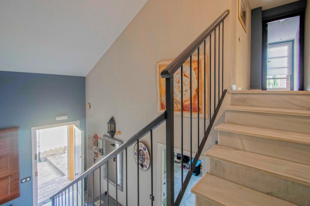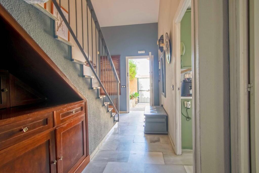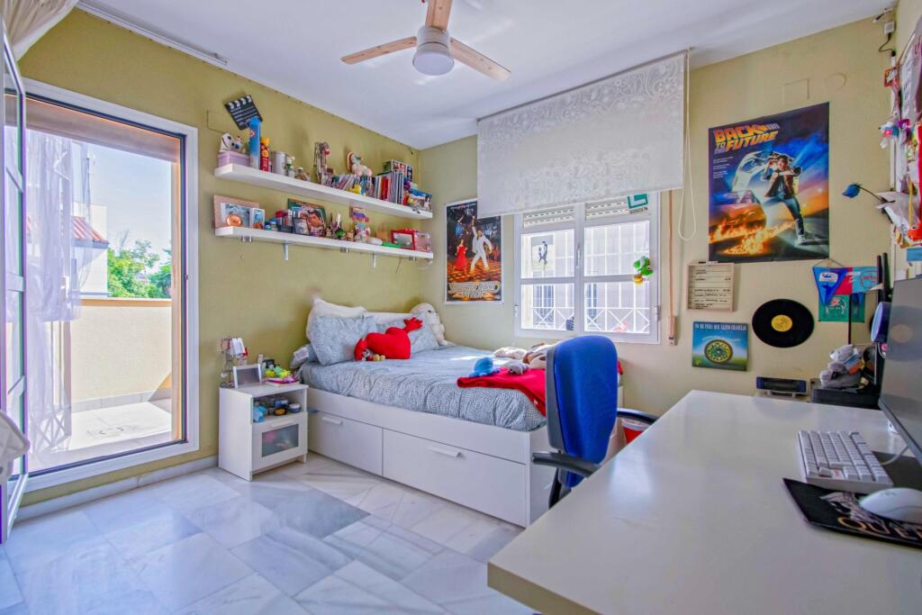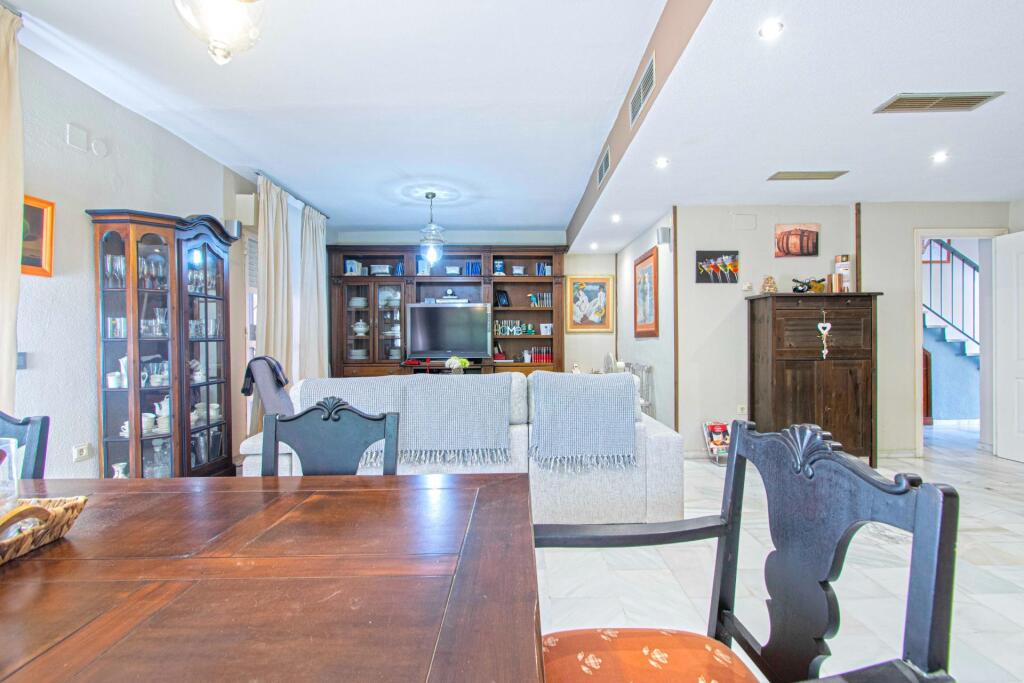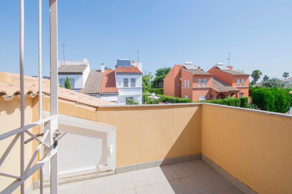Presentamos esta maravillosa casa pareada haciendo esquina de 5 dormitorios en la calle Pimentón, Mairena del Aljarafe. La vivienda ha sido cuidadosamente ampliada para crear espacios únicos y funcionales. Su posición privilegiada en la urbanización le aporta mayor luminosidad y privacidad. En la planta baja nos encontramos un gran salón-comedor de 43 m² con acceso a terraza, cocina amueblada muy luminosa, baño completo y dormitorio insonorizado ideal para estudio o trabajo desde casa. El garaje se encuentra en el porche delantero con capacidad para coche y moto con puerta automática. La planta alta se distribuye en cuatro dormitorios amplios, dos de ellos con terraza. Destaca especialmente el dormitorio abuhardillado con terraza privada. La casa cuenta con nueve armarios empotrados distribuidos estratégicamente.El jardín lateral tiene espacio preparado para instalar una piscina. El porche trasero, cubierto con pérgola de madera, incluye zona de bar totalmente equipada, perfecta para el ocio y las reuniones familiares.La vivienda dispone de aire acondicionado centralizado con termostatos independientes en cada estancia. Las placas solares con depósito de 400 litros aseguran agua caliente todo el año de forma eficiente. Los sensores de movimiento en pasillos encienden automáticamente las luces al pasar, y el riego automático mantiene el jardín siempre cuidado. El sistema de videovigilancia con tres cámaras perimetrales aporta seguridad adicional.Mairena del Aljarafe ofrece una calidad de vida excepcional con excelente conexión a Sevilla. La estación de Metro Ciudad Expo (Línea 1) conecta directamente con el centro de Sevilla en pocos minutos, y múltiples líneas de autobús facilitan el transporte público.Servicios sanitarios: Centro Médico Quirónsalud Mairena, centros de salud Ciudad Expo y Clara Campoamor, con el Hospital San Juan de Dios del Aljarafe como referencia.Comercios: Centro Comercial Metromar con cines y restaurantes, supermercados Mercadona, Aldi, Lidl, DIA y MAS distribuidos por la zona.Educación: Colegio Aljarafe (concertado), Centro Docente María (privado bilingüe), Escuela Infantil Ciudad Aljarafe, y centros públicos como CEIP Lepanto, Guadalquivir, Miguel Hernández, IES Atenea e IES Cavaleri.Una oportunidad única para vivir en una de las mejores zonas del Aljarafe con todas las comodidades.Para más información y visitas, no dudes en contactarnos.SE VENDE SIN AMUEBLARInformamos a nuestros clientes que el precio de venta no incluye lo siguiente: Honorarios de la agencia inmobiliaria, Impuestos (I.T.P., I.V.A. o A.J.D., en su caso) ni otros gastos de la compraventa (gastos de Registro de la Propiedad, Notaría, Gestoría ni de posible Financiación). Documento F.I.S. a disposición del consumidor según Decreto 218/2005 Junta de Andalucía.