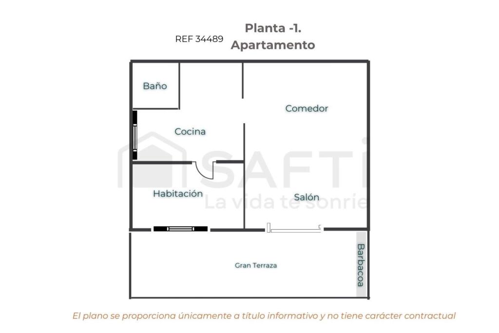 Aire acondicionado, jardín y barbacoa.