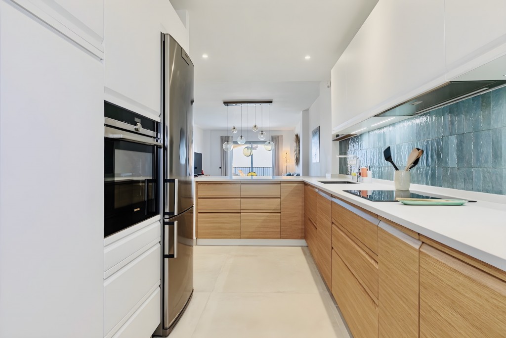 Este amplio apartamento de 103m² ha sido completamente renovado con materiales de alta calidad. La cocina abierta y totalmente equipada se integra a la perfección con el comedor y el salón, ambos espaciosos y luminosos. Cada detalle ha sido cuidadosamente seleccionado para combinar elegancia y durabilidad.