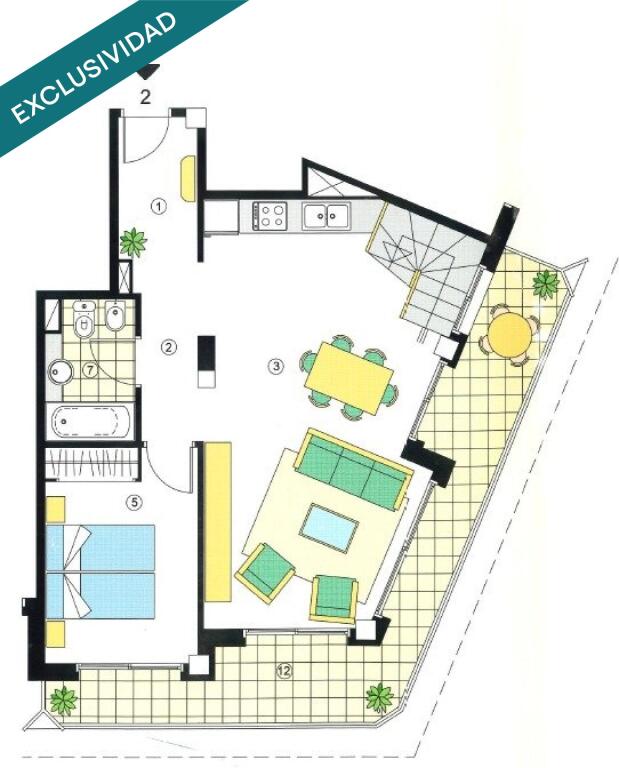 En la primera planta, encontrarás un espacio diáfano y muy luminoso gracias a los balcones que rodean toda la vivienda. Dispone de una elegante cocina abierta, integrada en el salón-comedor, una habitación doble y un baño completo. Además, cuenta con hilo musical en todas las estancias, aportando un plus de confort y modernidad.