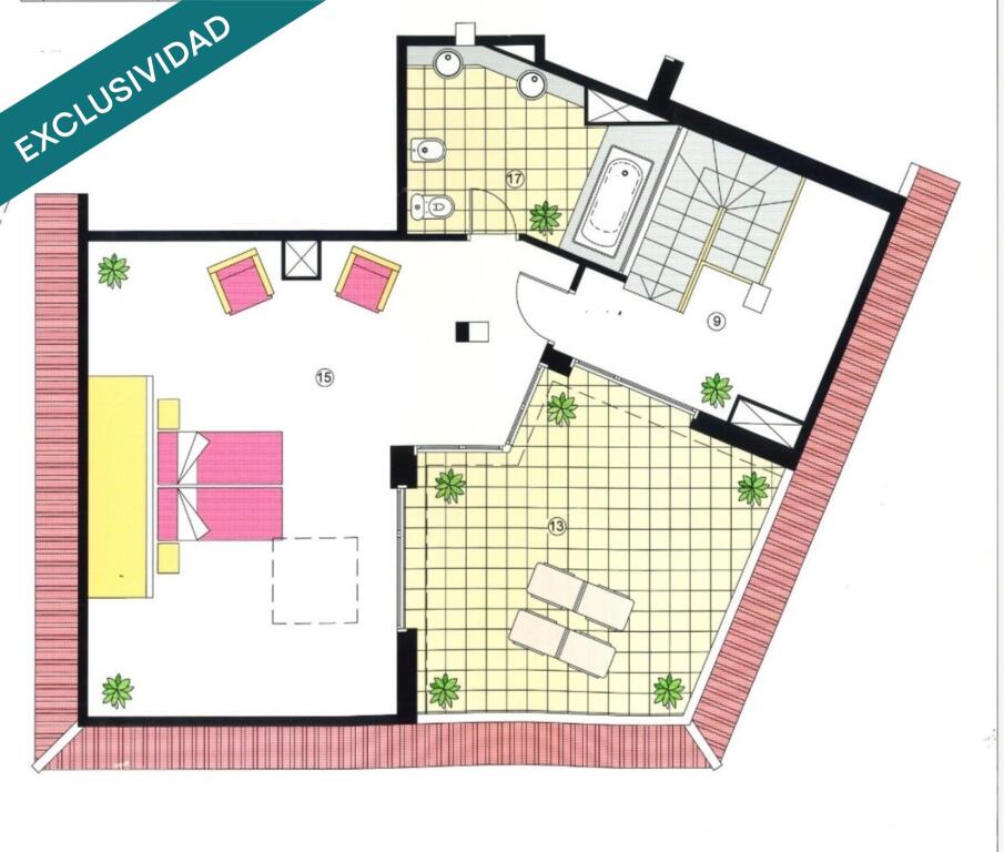En la planta superior, se ubica una espectacular mega suite con baño privado equipado con jacuzzi y ducha, además de salida directa a una terraza privada con zona chill-out, ideal para relajarse y disfrutar de la máxima privacidad.