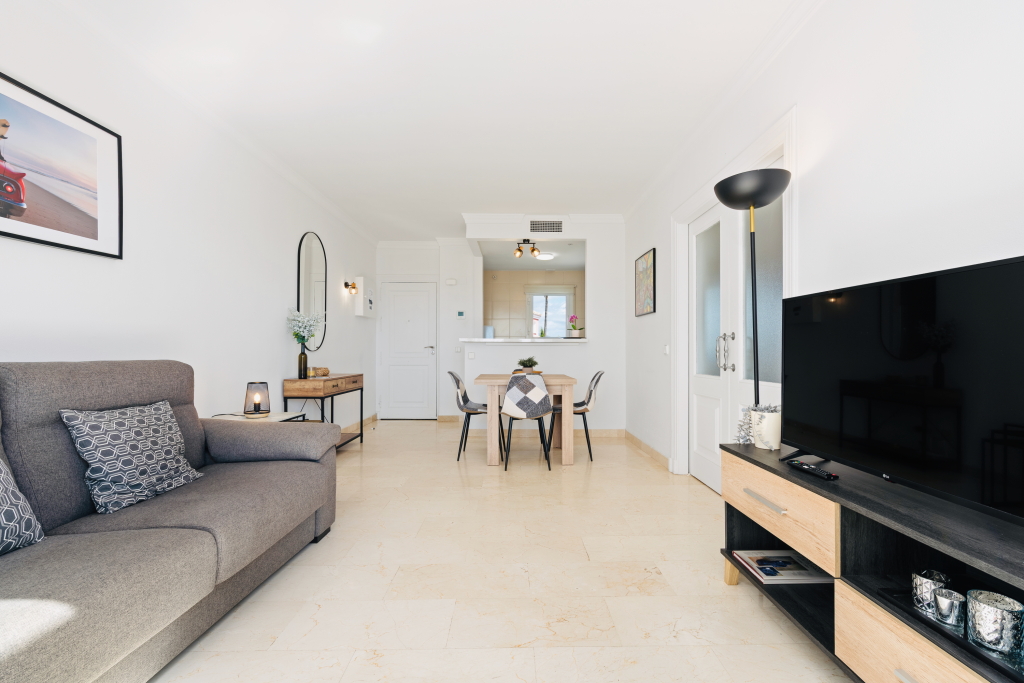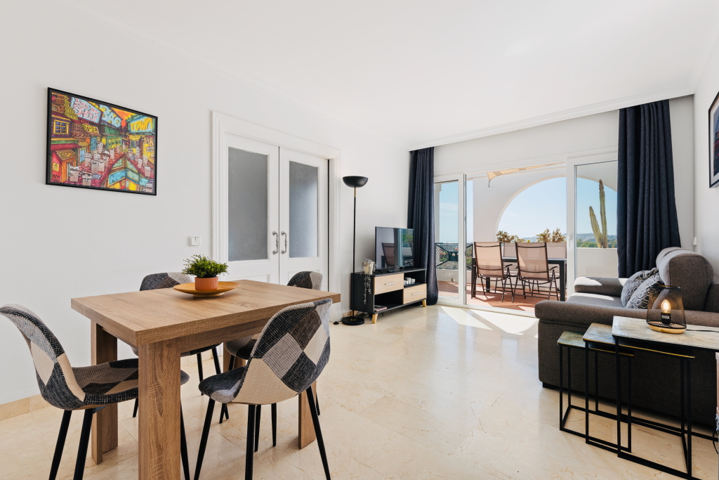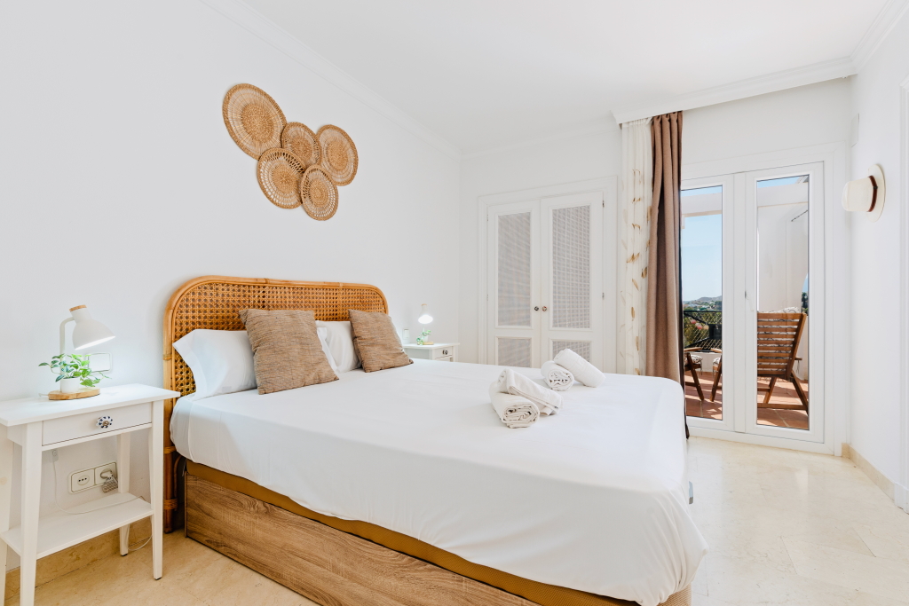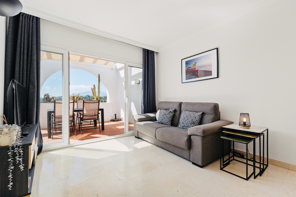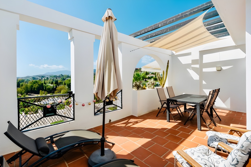 Orientada al Suroeste, la terraza brinda unas vistas panorámicas inigualables al mar, las montañas y, en los días despejados, hasta Gibraltar. El lugar perfecto para disfrutar de las puestas de sol y las agradables noches de verano en total serenidad.