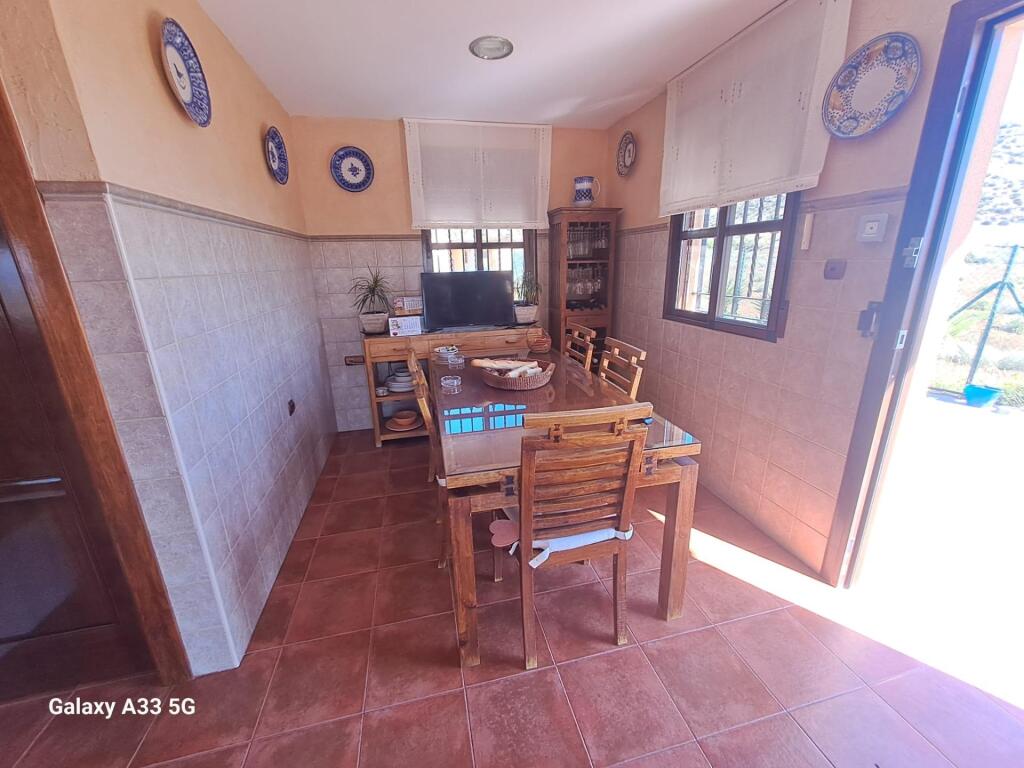 Espectacular vivienda situada en un enclave estratégico desde el que domina amplias vistas al mar y a la montaña, cuenta con una parcela de 34.000m2, de los que 2000m2 se encuentran vallados junto a la vivienda. Se encuentra distribuida toda en la planta baja que cuenta con recibidor, salón comedor con chimenea, cocina, 4 dormitorios y 4 cuartos de baño y la planta primera que cuenta con 1 dormitorio y amplia terraza con vistas al mar. La planta sótano tiene capacidad para 3 vehículos.La piscina tiene unas dimensiones de 8x4 metros.La casa se vende amueblada a excepción de algún mueble puntual. Tiene luz eléctrica, agua potable y agua de riego.