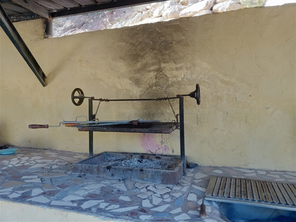 La finca cuenta con un deshidratador solar que permite conservar las cosechas de frutas y hierbas. En la zona baja, una explanada salpicada de fresnos y arces ofrece un espacio perfecto de descanso, junto con dos acogedoras caravanas. Un arroyo serpentea por esta parte del terreno, alimentando una piscina natural con plantas depurativas, creando un oasis de tranquilidad.