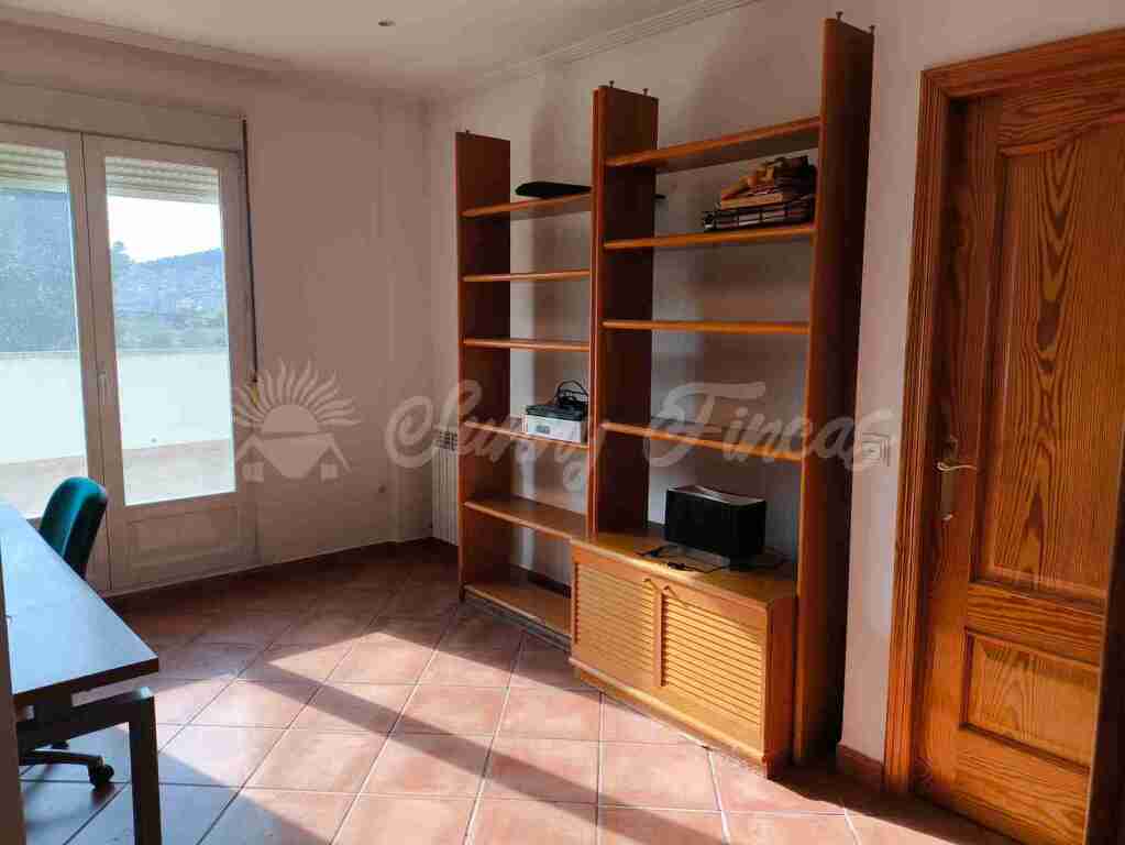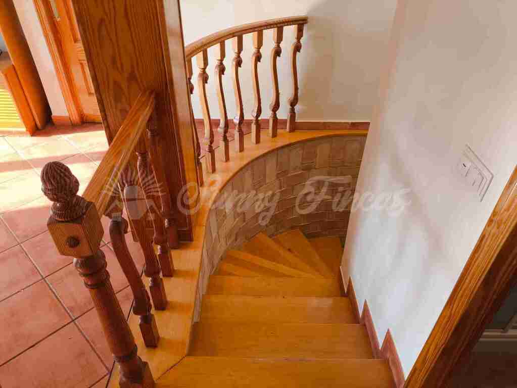 Subiendo unos pocos escalones hasta la marquesina, con espacio para comer al aire libre, se accede a la propiedad, donde nos recibe un amplio pasillo. A la izquierda se encuentra el luminoso y espacioso salón-comedor con chimenea; a la izquierda, una amplia cocina independiente con acceso a una galeria. Desde el pasillo, con un práctico armario empotrado a la izquierda, se accede al primer cuarto de baño familiar y a dos dormitorios dobles, el principal con un bonito cuarto de baño en suite. En la planta superior se encuentra el segundo cuarto de baño familiar, dos dormitorios de buen tamaño y una práctica zona de estudio con una luminosa puerta-ventana que da a un gran balcón con mucho espacio para colocar mesas y sillas y unas impresionantes vistas.