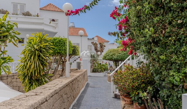 Esta exclusiva villa moderna en primera línea de la playa de Fañabé ofrece una combinación única de lujo, diseño contemporáneo y ubicación privilegiada. Completamente renovada con materiales de alta calidad y la última tecnología, la propiedad ha sido diseñada para crear un hogar elegante en el prestigioso complejo Lagos de Fañabé. Distribuida en dos plantas, la villa cuenta con un amplio salón con ventanales de suelo a techo que proporcionan impresionantes vistas al océano y acceso directo a una gran terraza y a la playa. La segunda planta incluye una cocina moderna totalmente equipada con electrodomésticos integrados, bodega y vistas panorámicas a la piscina, además de un dormitorio cómodo y un baño moderno. En la planta superior, la suite principal dispone de ventanales de suelo a techo, un baño de diseño, un gran armario empotrado y una terraza privada para disfrutar de espectaculares puestas de sol y vistas al mar. El segundo dormitorio es igualmente luminoso y espacioso, con su propia terraza con vistas a la piscina y un baño completo con lavadora. La villa también ofrece aire acondicionado central, una elegante escalera iluminada, dos accesos independientes y la opción de alquilar una plaza de aparcamiento. El complejo está muy bien cuidado y ofrece jardines tropicales, varias piscinas, restaurantes y bares, con tiendas y zonas de ocio a pocos pasos. Con 120 m² de superficie interior y 80 m² de terrazas, esta propiedad representa una oportunidad de inversión única y una casa de ensueño frente al mar en una de las zonas más exclusivas de Tenerife. Communidad: 300€ , IBI: 735€.DOM Tenerife compra con seguridad!