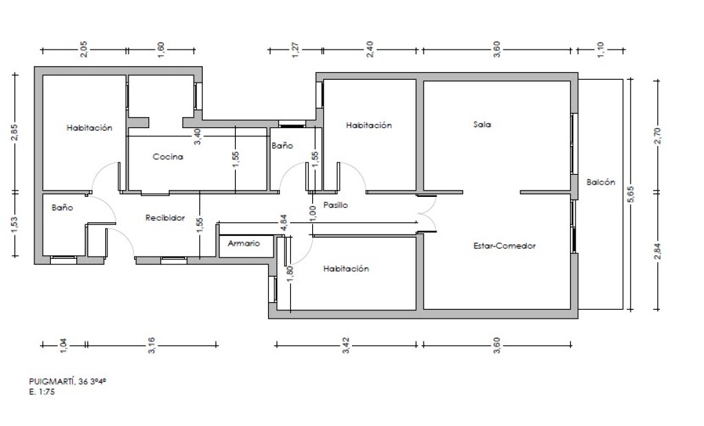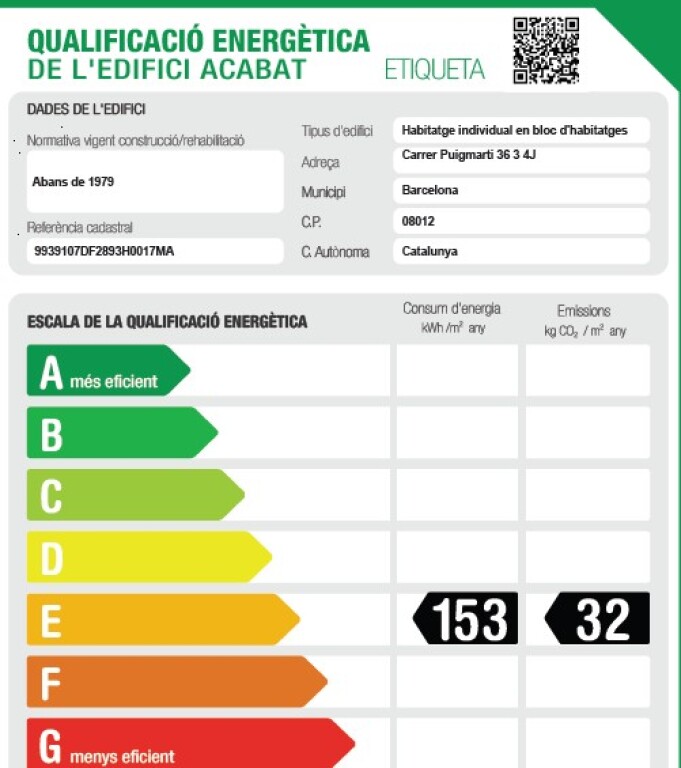 El inmueble se encuentra en un edificio con entrada desde la calle peatonal Puigmartí, compuesto por planta baja más seis alturas. El edificio está muy bien conservado con INSPECCIÓN TÉCNICA pasada.