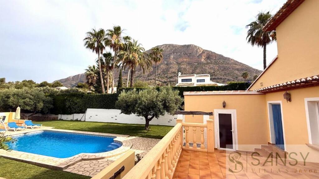 Chalet 5 dormitorios, 3 baños, 1 garajes, Buen estado, en Jávea-Xàbia, Alicante SE ALQUILA SOLO DE OCTUBRE 2025 A ABRIL 2026Fabuloso chalet orientado el sur a la falda del Montgo .Esta casa ofrece mucha privacidad ya que se encuentra en una calle sin salida en una zona de la mas cotizada de Javea , con una parcele de 2200m2 y un jardín con olivos y palmeras .La vivienda se distribuye en dos plantas , en la planta baja dispone de una hall , luminoso salón/comedor con chimenea, la amplia cocina totalmente equipada y salida al exterior .Los 2 dormitorios dobles con armarios empotrados , 1 baño con ducha .En la planta de arriba encontramos 3 dormitorios dobles con armarios empotrados , el dormitorio principal con baño en suite y acceso a la terraza donde se aprecia vistas panorámicas. Un baño con ducha para compartir entro los otros dormitorios .Toda las habitaciones tienen aire acondicionada , toda la casa con calefacción central , garaje cerrado y amplios aparcamientos , la piscina estar rodeada de una espaciosa terraza y zona de BBQ.Quieres pasar el invierno en una casa soleada todo el dia Este es la perfecta .SE REQUIRE JUSTIFICANTE DE INGRESOS