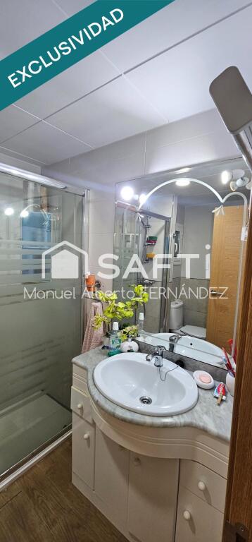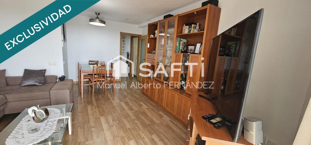 Situado en una sexta planta con ascensor, destaca por su amplitud y comodidad. Dispone de un luminoso salón-comedor con salida a balcón, tres habitaciones dobles y generosas, dos baños completos y una cocina perfectamente distribuida con acceso directo a una terraza posterior que actualmente se utiliza como lavandería y trastero. Todas las estancias son exteriores, lo que garantiza claridad y ventilación natural durante todo el día.