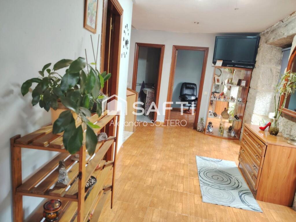 En Baredo-Baiona se encuentra esta acogedora casa de piedra de 156 m² distribuida en tres plantas, ideal como residencia habitual o segunda vivienda. La planta baja ofrece un espacio abierto con cocina americana equipada y preinstalación para estufa de pellets. En la primera planta encontramos un salón de paso, dos dormitorios (uno con armario empotrado) y un baño completo con ducha. La segunda planta cuenta con dos dormitorios abuhardillados, también con armarios empotrados. La vivienda dispone además de trastero y prácticos espacios de almacenaje. Construida en 2001 y en buen estado, está ubicada a solo 3 km del centro de Baiona, con rápido acceso a la autopista y a las espectaculares playas del Val Miñor, el paseo marítimo y todos los servicios esenciales. Una oportunidad única para disfrutar de tranquilidad, naturaleza y la comodidad de tenerlo todo cerca.