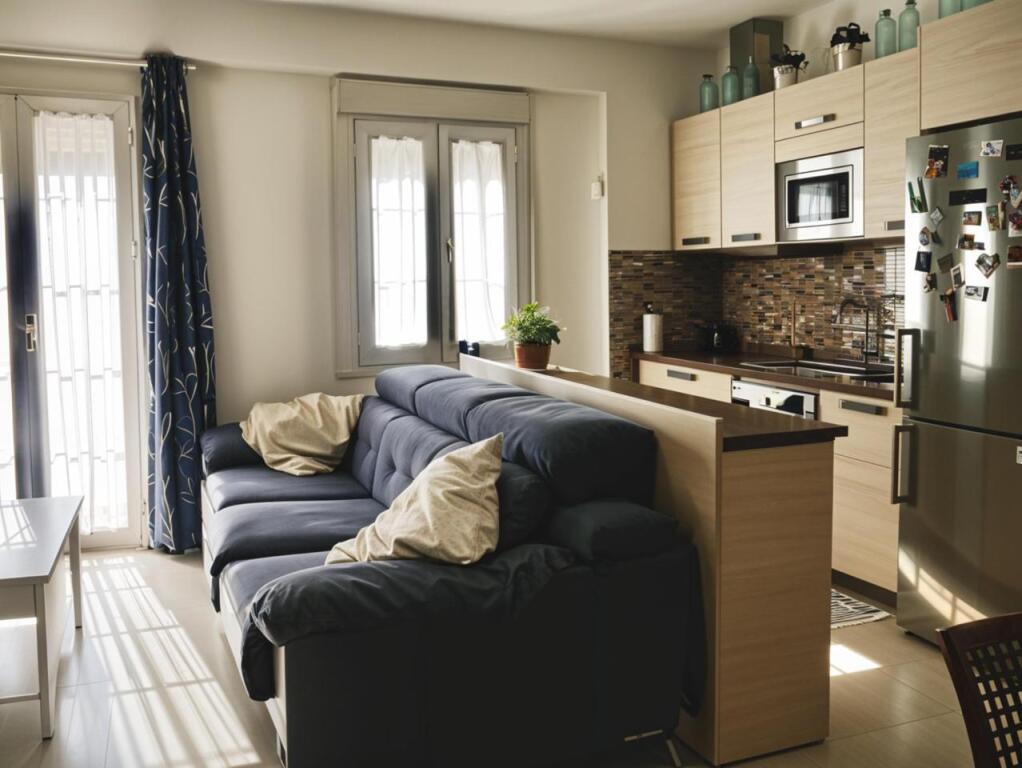 El salón está unido a una cocina americana, totalmente equipada, y con todos los ambientes: comedor, descanso y cocina perfectamente repartidos.