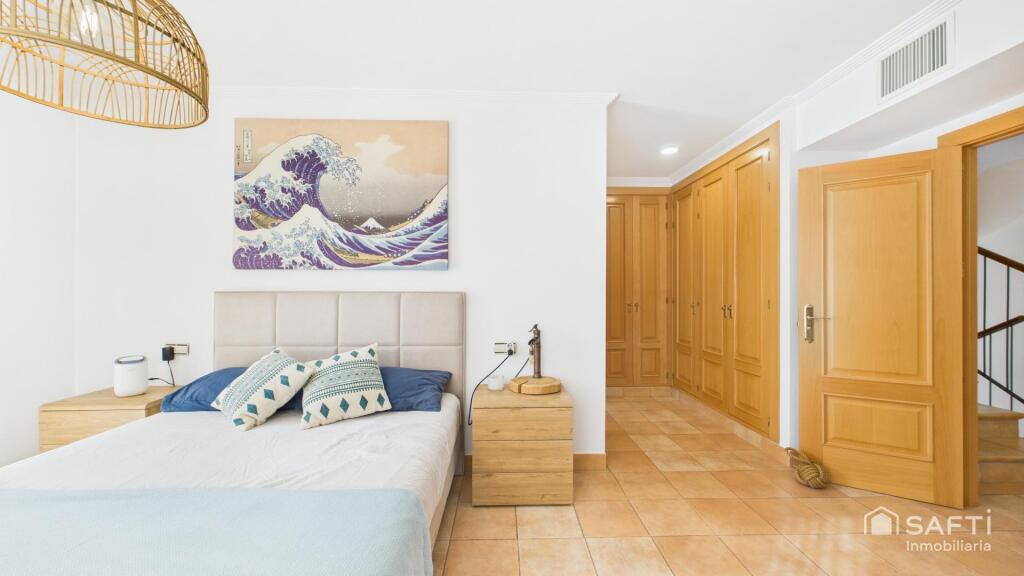 La propiedad dispone de tres dormitorios, incluyendo una suite principal con baño privado, y un total de tres baños completos. En la planta sótano, un gran espacio polivalente ofrece múltiples usos posibles: gimnasio, despacho, sala de juegos o zona de almacenamiento.