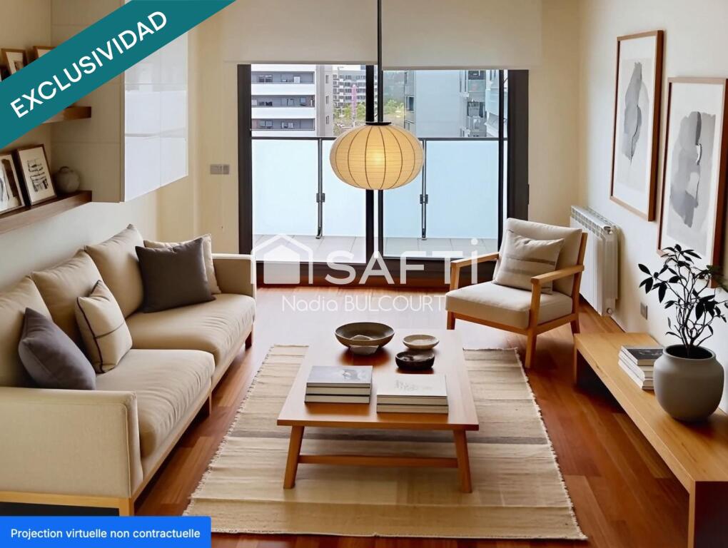 Con una superficie de 72 m², el piso cuenta con 2 dormitorios luminosos, 1 baño completo, salón-comedor con cocina americana equipada y lavadero. Dispone de armarios empotrados, aire acondicionado frío/calor, calefacción de gas y una excelente orientación que asegura luz natural durante todo el día.