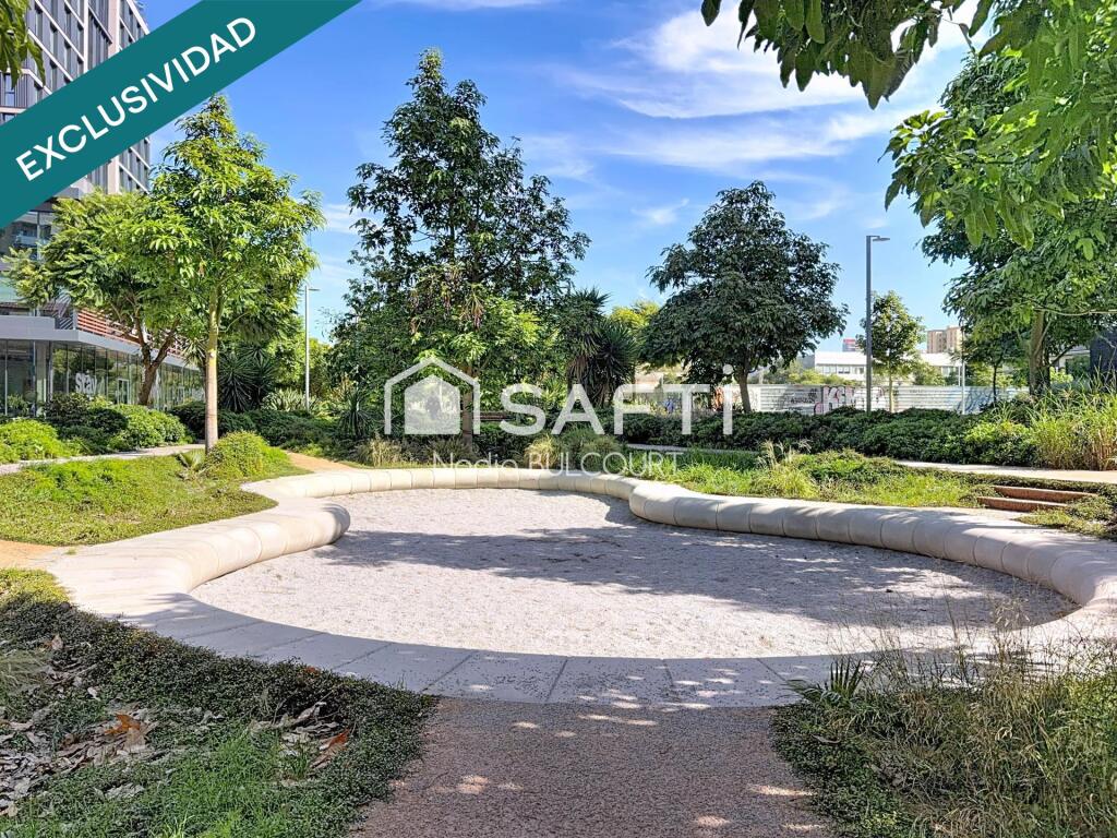La finca ofrece zona ajardinada, piscina comunitaria y dos ascensores. Situado a solo 2 minutos del Parque Central del Poblenou, entre los centros comerciales de Gloriès y Diagonal Mar, con todos los servicios cerca: metro, tranvía, autobuses, comercios, restaurantes y la playa a 10 minutos andando. Al lado del edificio hay también parques infantiles, zonas verdes y calles Super Illa casi sin tráfico.