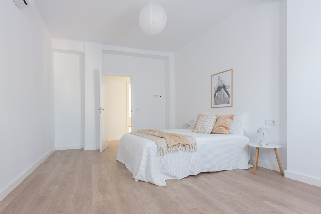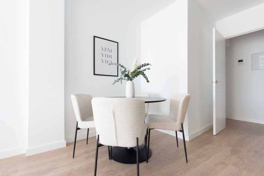 La vivienda se caracteriza por la amplitud y luminosidad de todos sus espacios, con una gran salón comedor en el que se integra una cocina abierta, que se entrega amueblada y equipada con electrodomésticos de primeras marcas, 3 habitaciones dobles con armarios empotrados -habitación principal con vestidor-, 2 baños completos, uno de ellos en suite. Además la vivienda cuenta con terraza con vistas despejadas y muy luminoso, con la boca del metro justo enfrente de la vivienda