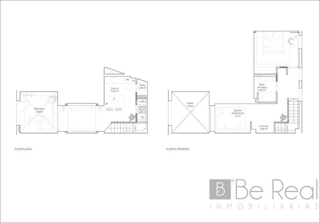 · Primera Planta 51,08 m2 construidos: habitación principal y un amplio ambiente que podrá utilizarse como segunda habitación o despacho. Esta planta cuenta con un cuarto de baño.