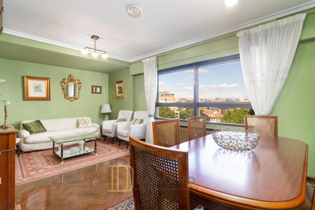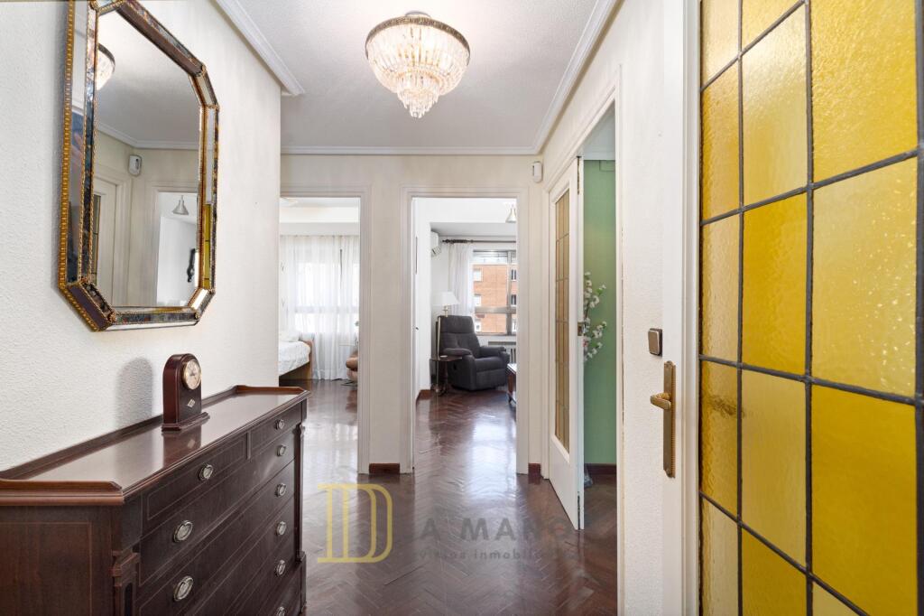 HOGAR FAMILIAR EN LA MEJOR FINCA DEL BARRIO Y CON LAS MEJORES VISTAS.SIN HONORARIOS DE AGENCIA PARA EL COMPRADOR.DE LA MANO Servicios Inmobiliarios tiene el placer de acercaros esta distinguida vivienda que reúne todo lo necesario para colmar las exigencias de las familias más exigentes. Sus casi 130 metros cuadrados útiles se encuentran distribuidos de forma inteligente y gozan todos ellos de una luminosidad natural maravillosa. Esto es posible gracias a que la vivienda se sitúa en una séptima planta en esquina, netamente exterior y con una vistas despejadas a la calle Corazón de María y Alfonso XIII.Actualmente se distribuye en 4 dormitorios amplios con armarios empotrados; tres baños completos, dos de ellos en suite; salón comedor; cocina independiente con terraza tendedero y hall recibidor. No tiene muros de carga y sí ventanas a varias orientaciones, lo que ofrece infinitas posibilidades de redistribución para adaptarse a las necesidades de tu caso concreto. Han pasado varios años desde su última reforma, pero aún permanece en buen estado de uso y disfrute con suelos de parquet, dobles ventanas, aire acondicionado y puerta acorazada. Además, junto con la vivienda se puede adquirir probablemente la mejor plaza de aparcamiento del edificio, amplia, de acceso directo y sin vecinos alrededor. De igual modo, si en casa tenéis más de un vehículo, os podemos traspasar la concesión de la plaza de aparcamiento del Ayuntamiento con acceso justo enfrente del edificio por el precio tasado.Esta vivienda tan especial requiere de un edificio que esté a la altura, algo que no siempre se consigue. Pero en esta ocasión, el match es perfecto, ya que se sitúa en una de las fincas más señoriales del barrio Prosperidad, con acceso adaptado para personas con movilidad reducida, varios ascensores, amplísimo portal representativo, portero físico siete días a la semana y amplias zonas comunes ajardinadas. Prosperidad es un barrio castizo que engloba varios micro barrios en su interior. El entorno de las calles Corazón de María, Alfonso XIII y Padre Claret es sin duda el ámbito más distinguido de este barrio, con fincas de los años ochenta en su gran mayoría, amplias avenidas , parques, colegios, centros de salud y una oferta dotacional y de servicios difícilmente igualable.Si buscas una vivienda estándar, desde luego esta no es la tuya. Si lo que buscas es CALIDAD para tu FAMILIA, estás en el sitio indicado. Llámanos o escríbenos y descubre en persona todo lo que esta vivienda puede ofrecerte.