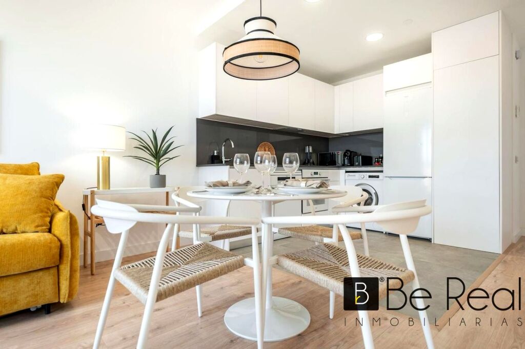 Se alquila totalmente amueblado y equipado, incluyendo aire acondicionado centralizado. Además, el precio incorpora lavadora, conexión Wi-Fi y agua.