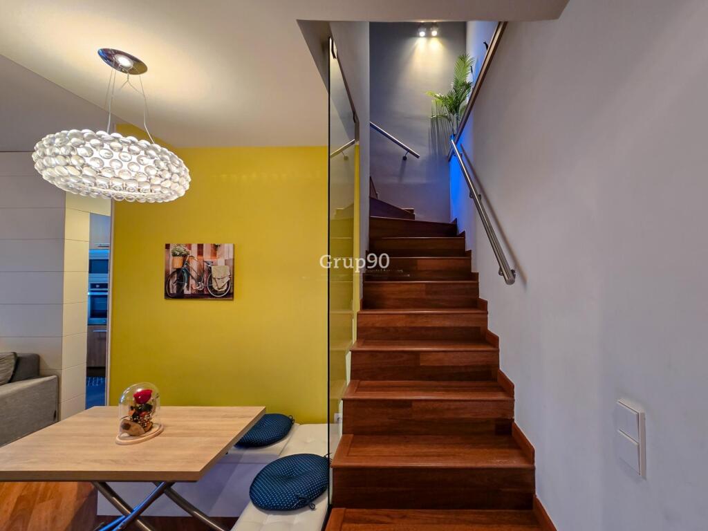 Atico Dúplex , con varias terrazas. Entrando se accede a distribuidor y salón con salida a terraza. Frente al distribuidor escalera forrada de madera que da acceso a la planta ático. Sigue al Salón cocina independiente, aunque con pared de separación acristalada. Sigue habitación doble, con salida a terraza y, junto al salón-comedor, aseo de cortesia.En la 2ª planta, habitación/despacho multifuncion con acceso a gran terraza de 37 m2. habitación tipo suite con baño completo con ducha. A la derecha de la escalera habitación individual .Gran terraza con vistas panoramicas, equipada para juegos, barbacoa, etc.