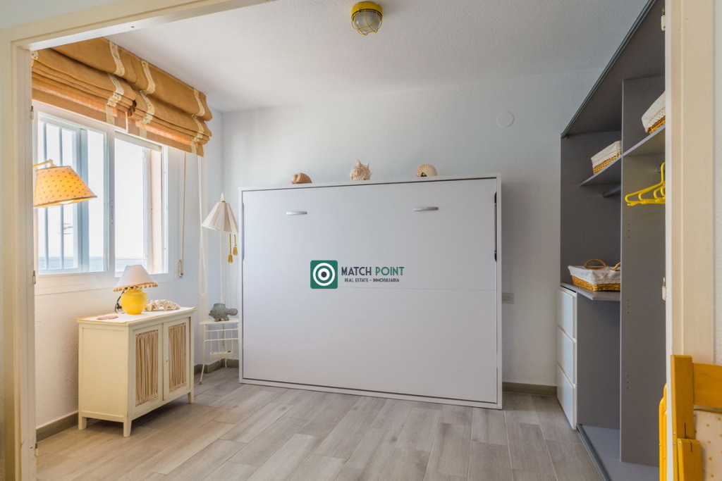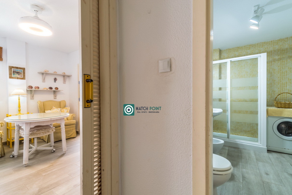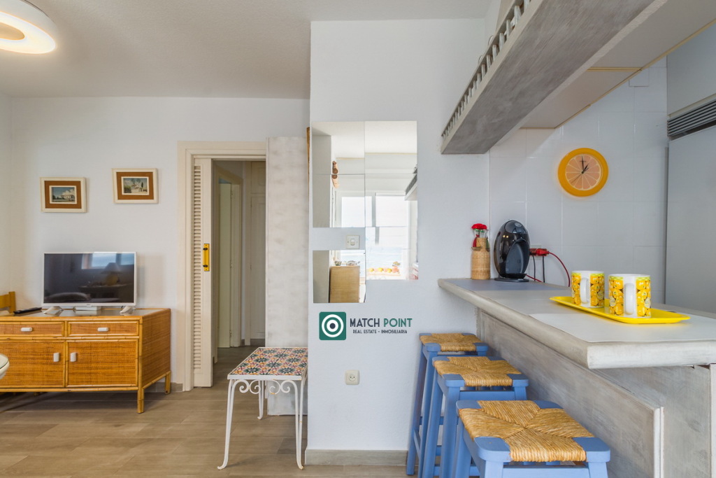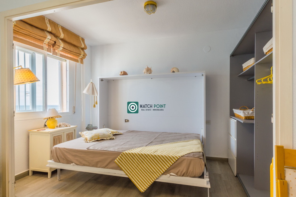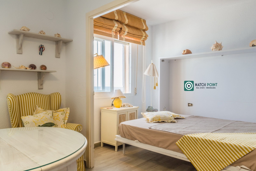 Un apartamento muy agradable y coqueto, con dos dormitorios, aunque ahora esta como solo uno, con camas de matrimonio abatibles en los dos, como se ve en las fotos, según las necesidades del momento del inquilino, pequeña cocina americana , saloncito y sobre todo esa magnífica terraza para disfrutar de nuestro clima todo el invierno.