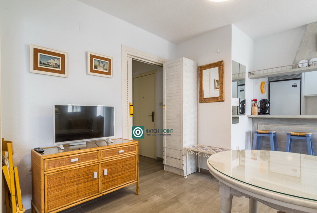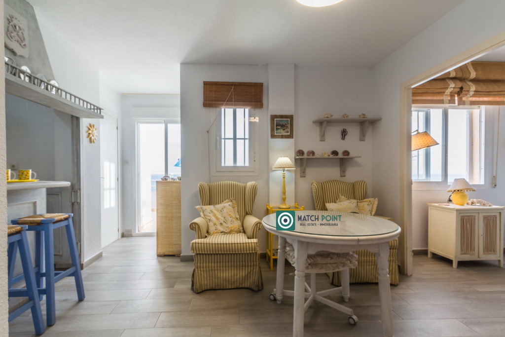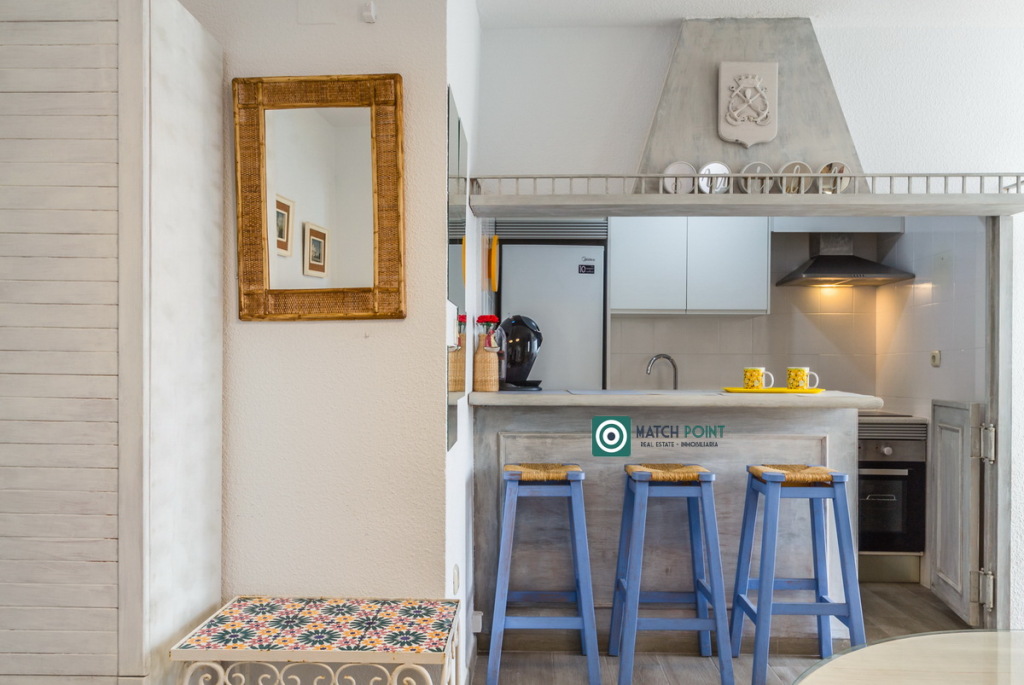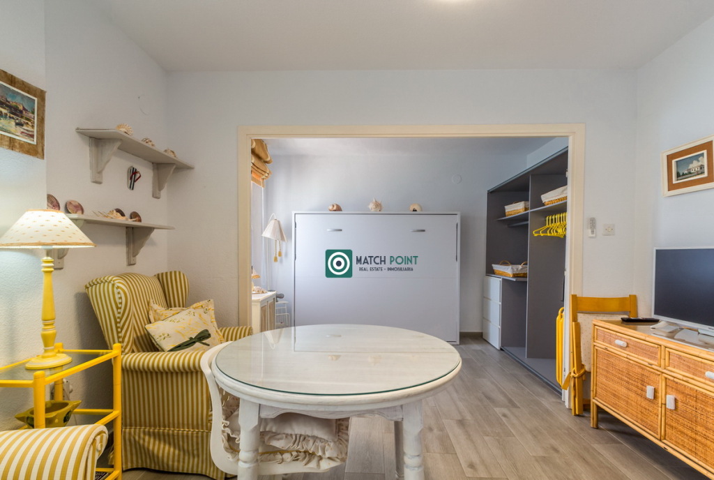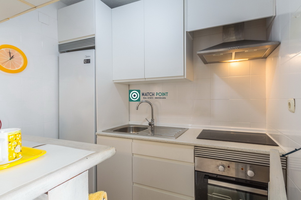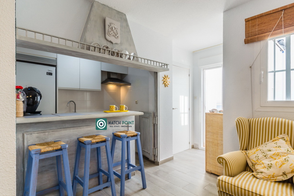 Un apartamento muy agradable y coqueto, con dos dormitorios, aunque ahora esta como solo uno, con camas de matrimonio abatibles en los dos, como se ve en las fotos, según las necesidades del momento del inquilino, pequeña cocina americana , saloncito y sobre todo esa magnífica terraza para disfrutar de nuestro clima todo el invierno.