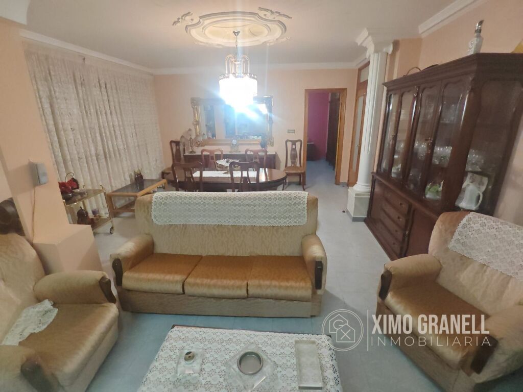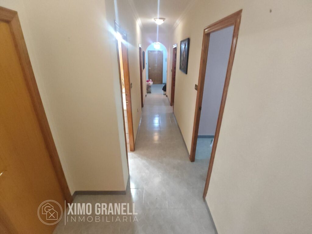 Piso esquinero, muy luminoso, de cuatro habitaciones y dos baños con terraza compartida en planta superior ubicado en la primera planta de un edificio de tres plantas sin ascensor en el Barrio Carbonaire de La Vall d'Uixó (Castellón). Sólo una vivienda por planta.