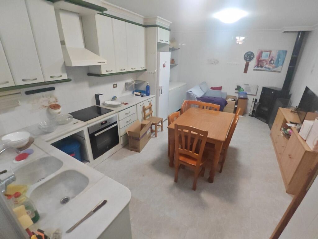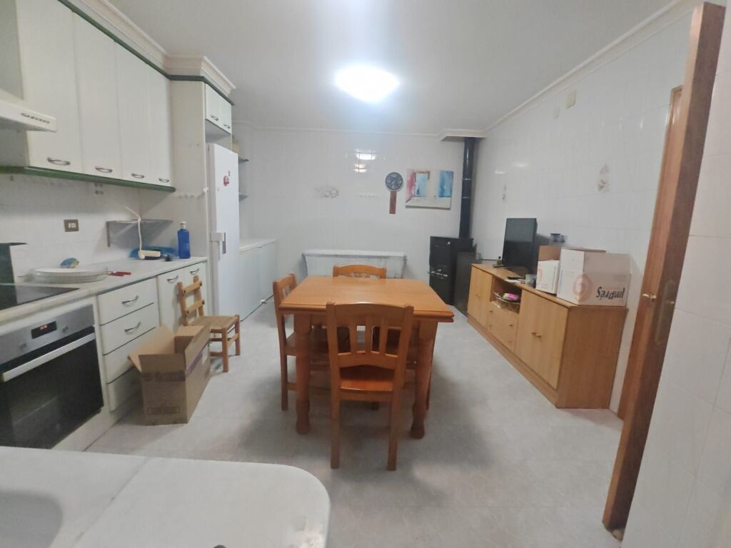 La vivienda se distribuye en recibidor, cuatro habitaciones amplias, trastero, cocina espaciosa con estufa de leña y acceso al patio de luces, dos baños completos (uno con bañera y otro con plato de ducha) y salón comedor exterior de grandes dimensiones.
