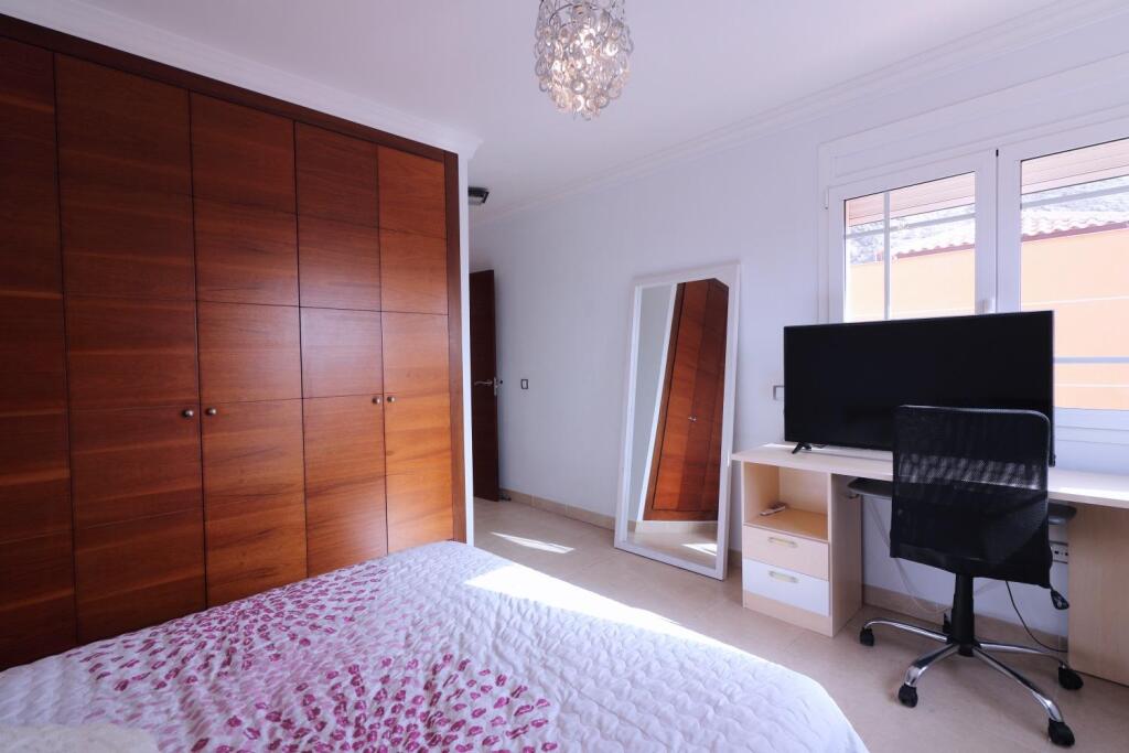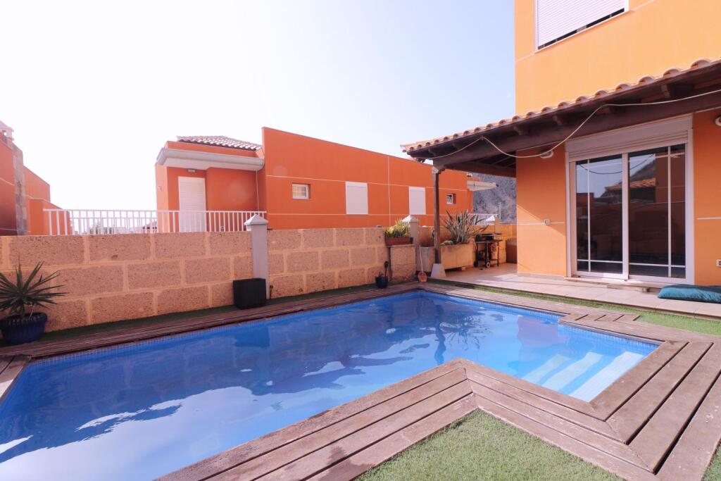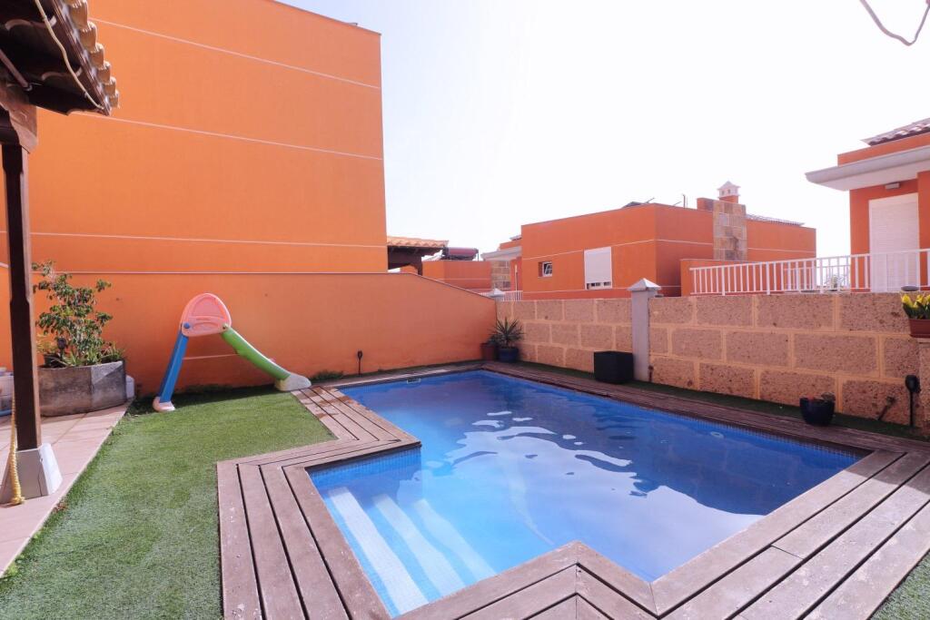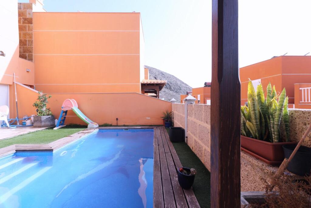Descubra el lujo y la comodidad en este impresionante chalet de 395m² ubicado en la codiciada zona de Los Cristianos.Esta residencia excepcional se despliega elegantemente a lo largo de tres plantas, ofreciendo un espacio habitable generoso y versátil.Planta Baja: Al ingresar, será recibido por un espacioso salón-comedor, perfectamente integrado con una moderna cocina independiente. Esta planta también cuenta con un práctico cuarto de lavado, un dormitorio adicional ideal para usar como despacho o para invitados, y un aseo.El exterior le invita a disfrutar del sol canario en su terraza cubierta, que da paso a un exuberante jardín y una espléndida piscina privada, el lugar perfecto para relajarse y entretener.Planta Alta: Subiendo a la planta superior, encontrará cuatro amplios dormitorios y tres baños completos. El dormitorio principal es un santuario privado, con un lujoso baño en suite y acceso a una terraza independiente con vistas encantadoras.Sótano Versátil (100m²): El sótano, con sus 100m², presenta un espacio increíblemente polivalente. Equipado con una habitación adicional y un baño, junto con una gran área abierta, ofrece múltiples posibilidades: desde un extenso garaje con capacidad para varios vehículos hasta la creación de un apartamento independiente con su propia entrada exterior, ideal para alquiler o para alojar a familiares y amigos.Comodidades Adicionales: La propiedad incluye una plaza de parking adicional conectada directamente a la planta baja, garantizando fácil acceso y seguridad.¡No pierda la oportunidad de hacer suyo este exclusivo chalet en una de las localizaciones más deseadas de Tenerife!