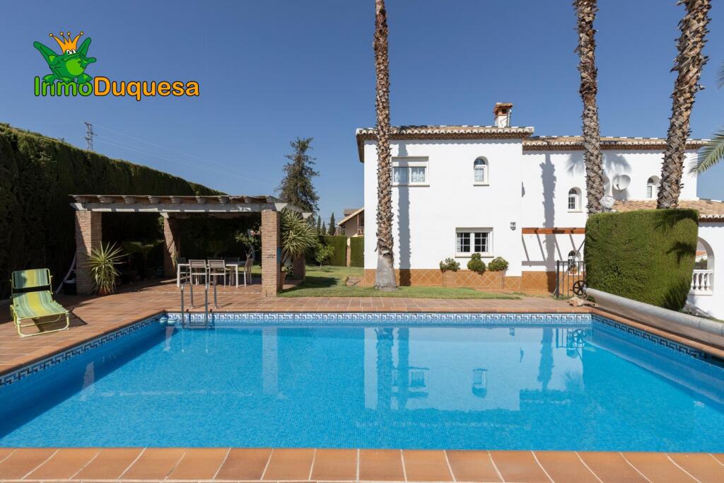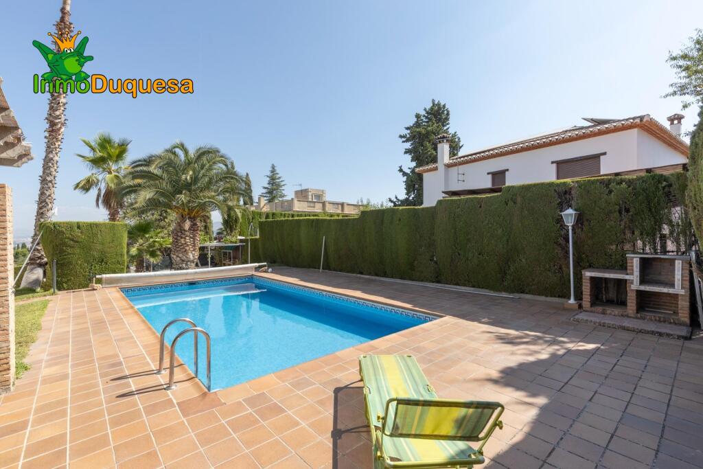 Gran Chalet independiente en Gojar, en la entrada del pueblo, con acceso rápido y cómodo a Granada capital. Si buscas una casa con espacio dentro y fuera, luz natural y vistas despejadas... esta es una gran opción.Dispone de 280 m² construidos (sin contar los porches) y una parcela de 768 m² donde se respira tranquilidad.Su exterior está pensado para disfrutar: Dispone de una zona ajardinada con palmeras y césped, una piscina privada, varios espacios al aire libre y un porche desde el que puedes ver Granada totalmente despejada.Además, la zona exterior te proporciona una gran independencia, ideal para disfrutarla con intimidad y sin que nadie te moleste.Se distribuye de la siguiente manera:– 5 dormitorios, uno de ellos en la planta baja (ideal como despacho o salita), tres más en la primera planta, y otro más en el semisótano, perfecto para los meses de calor o como habitación independiente.– El dormitorio principal cuenta con baño en suite y vestidor.– El salón es amplio y con mucha vida, dividido en tres ambientes: zona de comedor, rincón con chimenea y zona de estar. Además, está orientado al este y sur, lo que significa luz natural durante todo el día. Desde aquí se accede directamente a otro porche, ideal para disfrutar del sol en invierno. - En la planta baja también dispones de un garaje para dos coches, una sala de máquinas (depuradora y caldera de gasoil) y un taller de pintura con salida al exterior.Y si hablamos de ubicación, no puede ser mejor:📍 A solo 10 minutos de Granada capital,🏖️ A 45 minutos de la playa,🎿 Y a 45 minutos de Sierra Nevada.Además la urbanización cuenta con una única entrada y salida y vigilada con cámaras 24h por lo que su seguridad esta garantizada.Es una casa pensada para vivir, disfrutar y tenerlo todo a mano. Si te gusta lo que te he contado… espera a conocerla y te enamorará.El PVP indicado no incluye Gastos de Notaria, Registro de la propiedad ni Impuestos. Honorarios de agencia no incluidos. Las superficies expresadas en esta página son aproximadas y tienen carácter descriptivo.