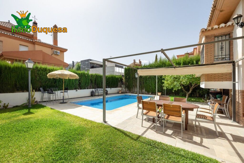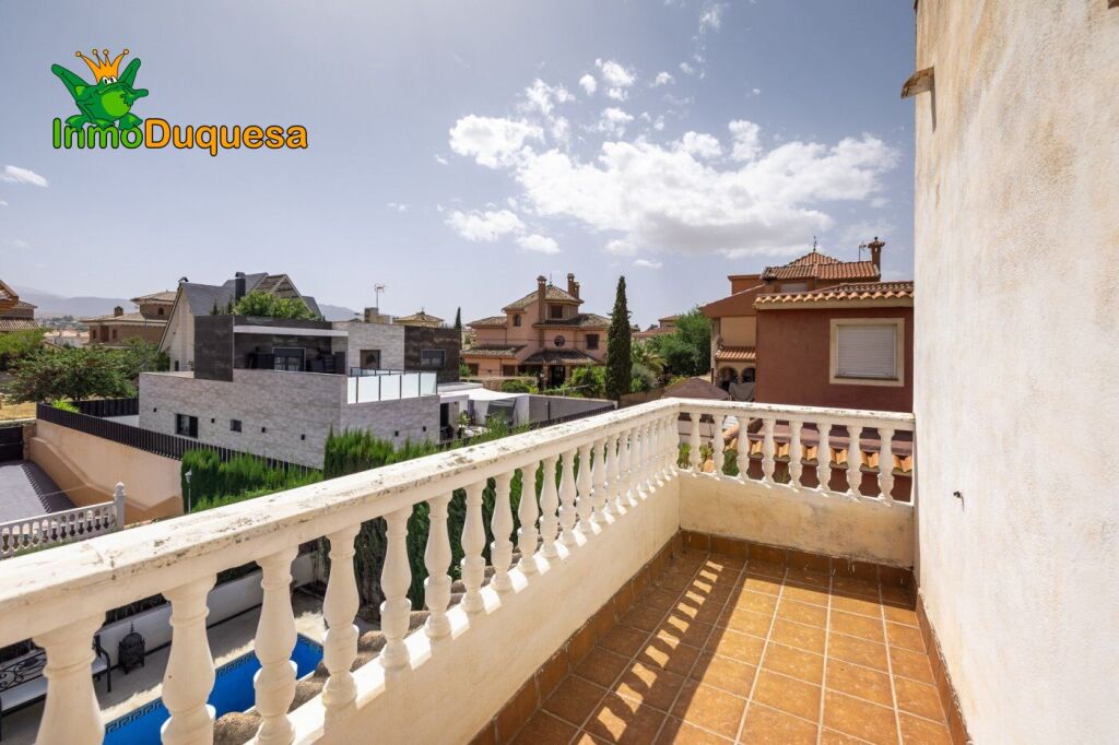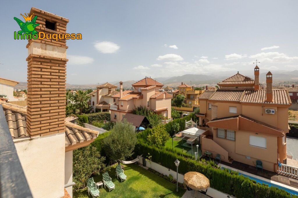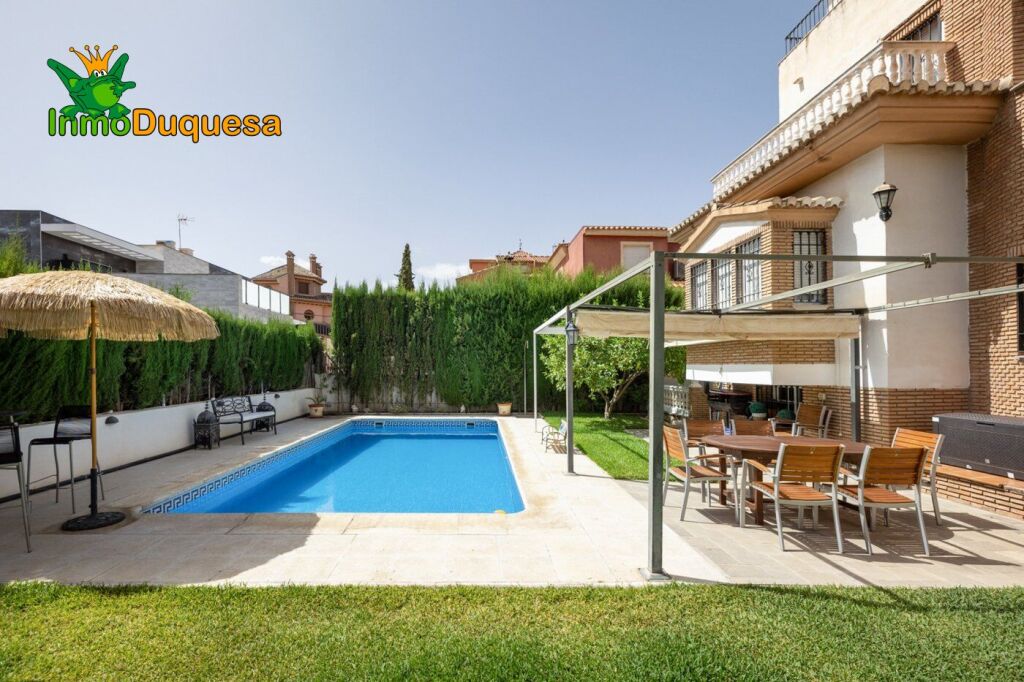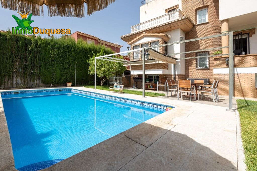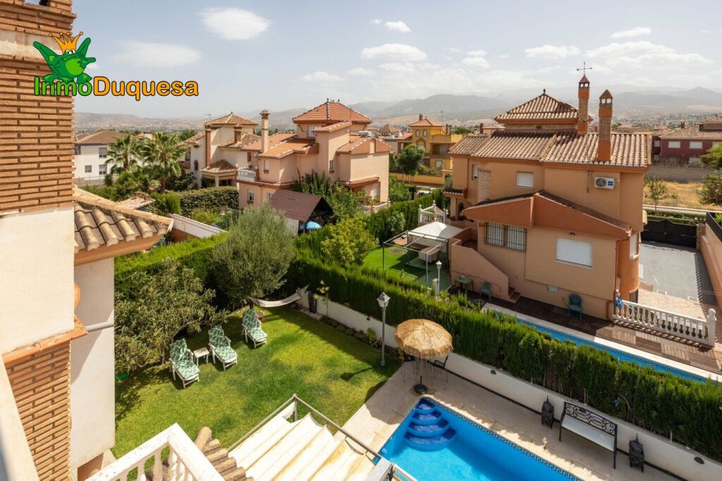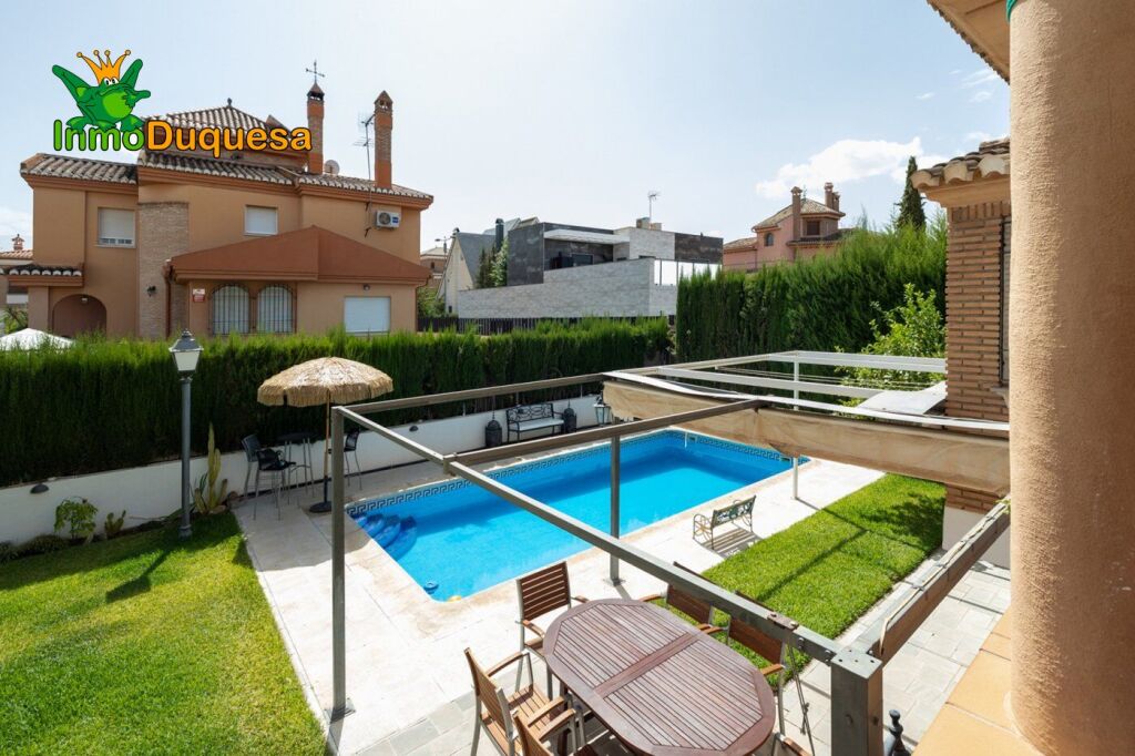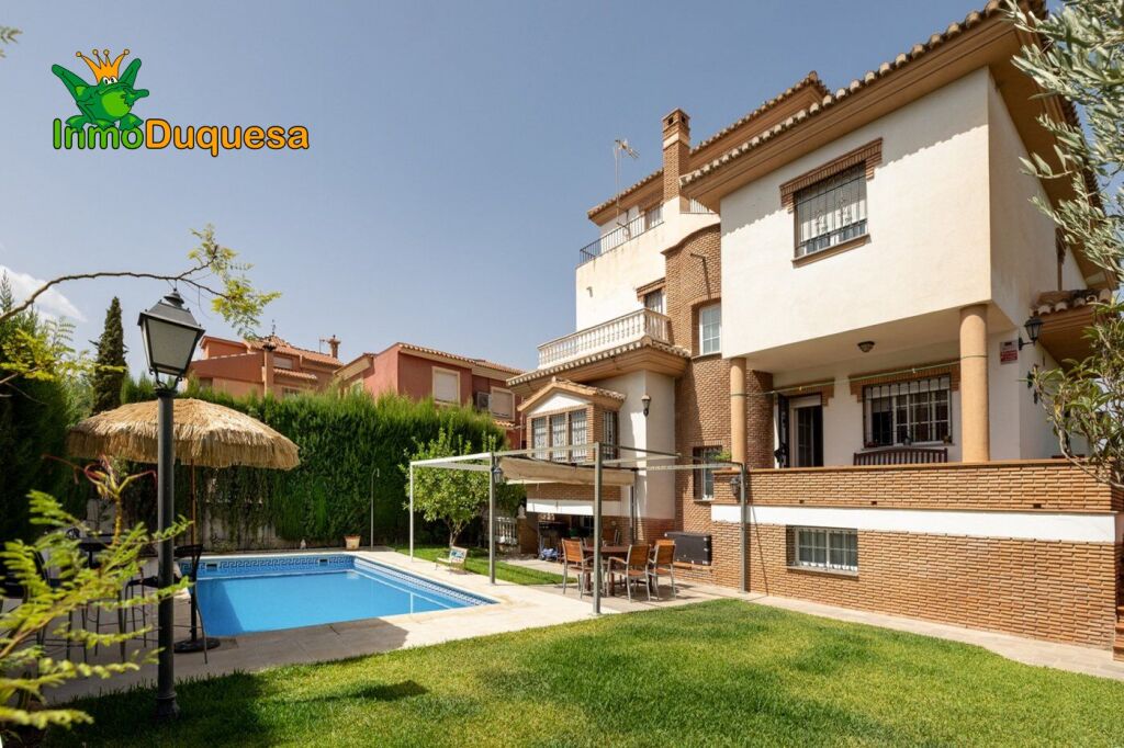 Hay casas que no solo se ven… se sienten. Y este chalet en Residencial El Carmelo es de esas que te roban el corazón nada más cruzar la puerta.Imagina vivir en una de las urbanizaciones más exclusivas de Granada, con seguridad 24 horas, rodeado de tranquilidad pero teniendo el metro, el Nevada y el Campus de la Salud a solo un paso.El chalet cuenta con 500 m² de parcela y 350 m² construidos, repartidos en varias plantas que esconden rincones únicos.Con la siguiente distribución: - En la planta baja, un salón amplio y luminoso para compartir momentos en familia, una salita de estar que fácilmente puede convertirse en dormitorio, un dormitorio independiente, un baño completo y una cocina que se abre directamente a la terraza y al patio con piscina. ¿Te imaginas las reuniones de verano aquí? - Sube a la primera planta y encontrarás tres dormitorios y dos baños. El principal, con vestidor y baño en suite, tiene además salida a una terraza privada que parece sacada de revista. - En la planta alta, una habitación diáfana llena de luz que espera convertirse en tu despacho soñado, sala de juegos o en ese rincón creativo que siempre quisiste. - Y cuando bajas al sótano, llega la sorpresa: un gran salón rústico con chimenea, perfecto para esas reuniones eternas con amigos, garaje con espacio para varios coches, dos habitaciones más y otro baño completo. - En el exterior, jardín con césped, piscina privada, terrazas, porches… cada rincón pensado para disfrutar y desconectar.Este no es solo un chalet, es un estilo de vida. Y cuando lo veas, entenderás por qué decimos que es una oportunidad única en El Carmelo. El PVP indicado no incluye Gastos de Notaria, Registro de la propiedad ni Impuestos. Honorarios de agencia no incluidos. Las superficies expresadas en esta página son aproximadas y tienen carácter descriptivo.