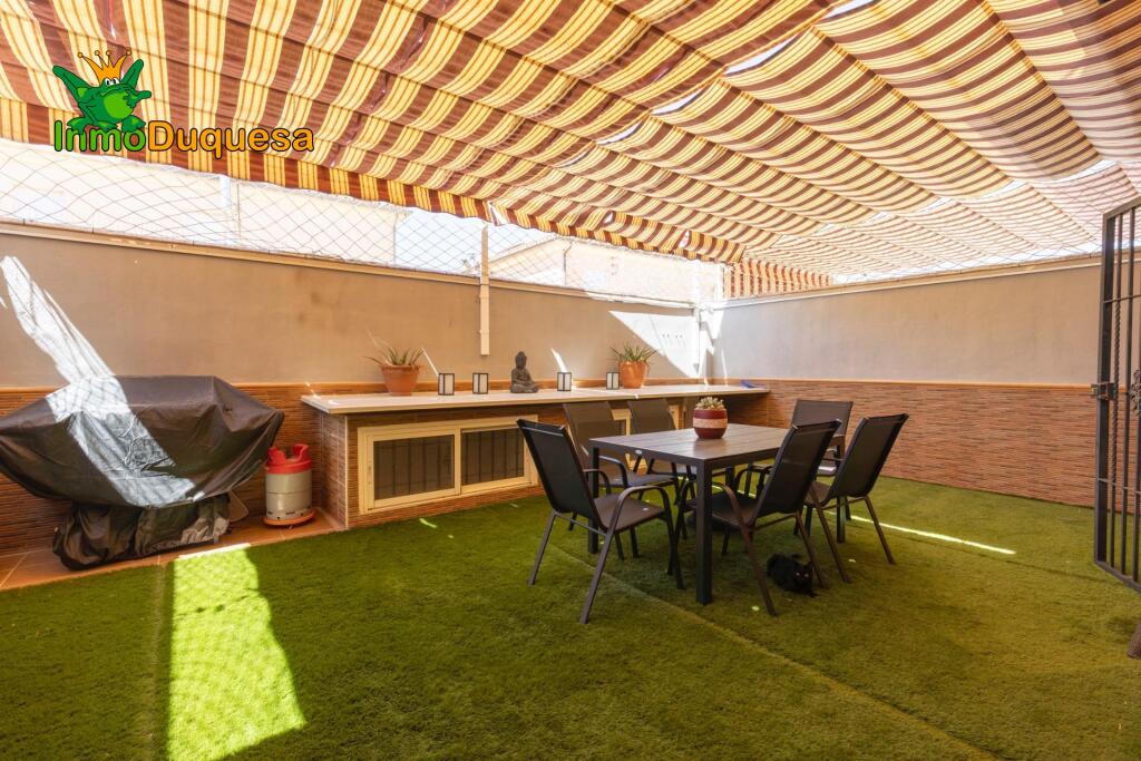 Casa adosada en perfecto estado para entrr a VIVIR.Situada en una calle de acceso privado/residencial muy tranquila y bien comunicada.La vivienda consta de 3 plantas: - En la PLANTA BAJA encontramos un baño de cortesía con ducha junto a la entrada, el salón comedor muy espacioso y con mucha luz natural y la cocina, que está completamente equipada y da acceso a un gran patio A NIVEL, perfecto para disfrutar con amigos o en familia. - En la PLANTA ALTA tenemos la zona de descanso con 3 amplios dormitorios dobles y un baño completo recientemente reformado. Todas las ventanas disponen de mosquiteras. - En la PLANTA SEMISÓTANO encontramos el garaje con capacidad para dos coches grandes. Una pequeña habitación para la colada y un cuarto dormitorio bastante amplio ideal para tener tu espacio de trabajo totalmente independiente del resto de estancias de la casa.Todas las habitaciones están equipadas con aires acondicionados y calefacción eléctrica. El PVP indicado no incluye Gastos de Notaria, Registro de la propiedad ni Impuestos. Honorarios de agencia no incluidos. Las superficies expresadas en esta página son aproximadas y tienen carácter descriptivo.