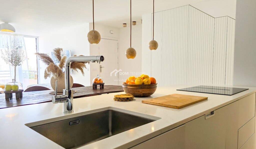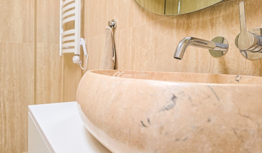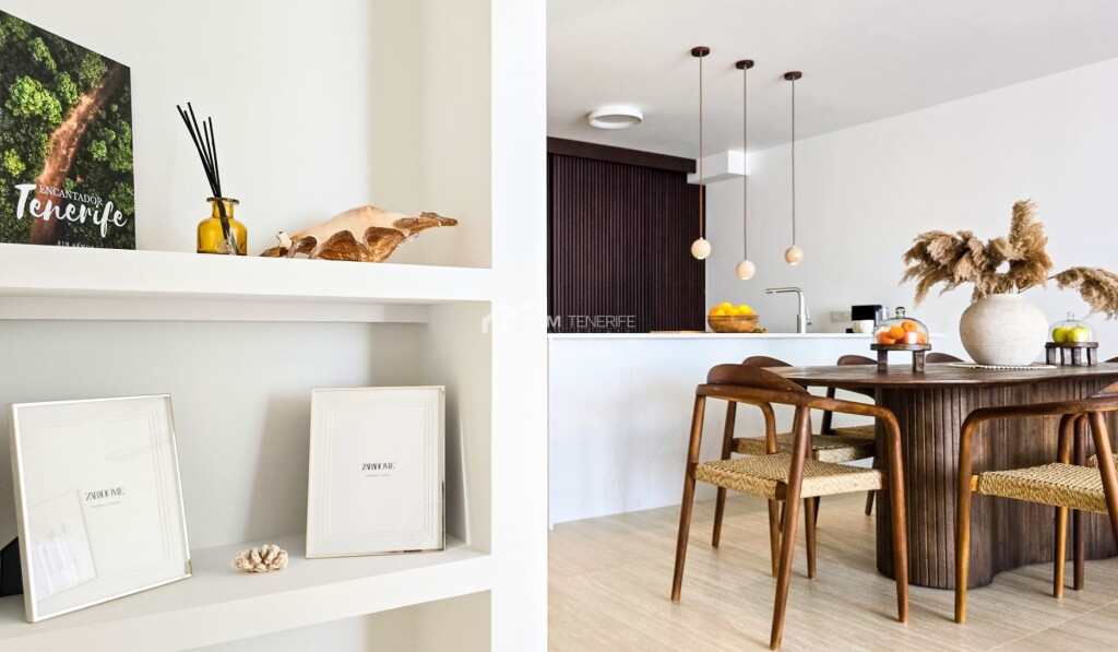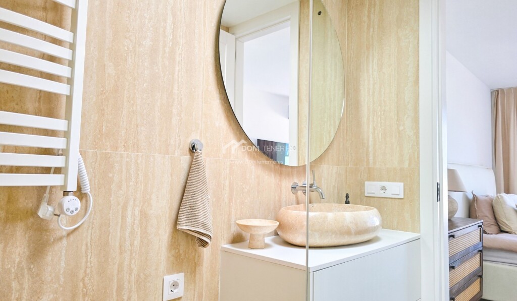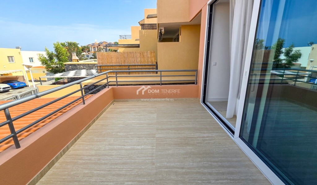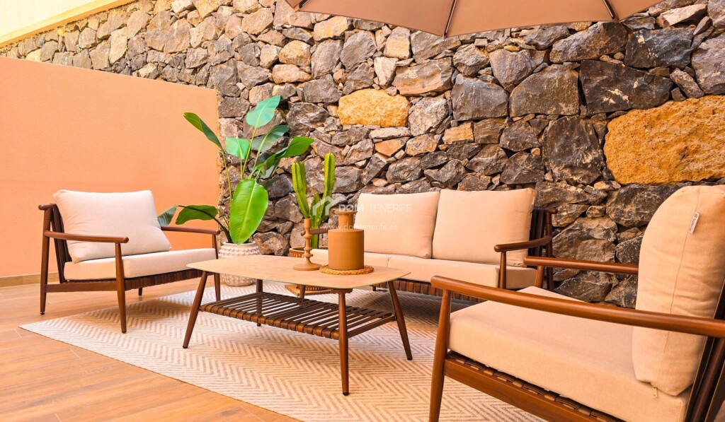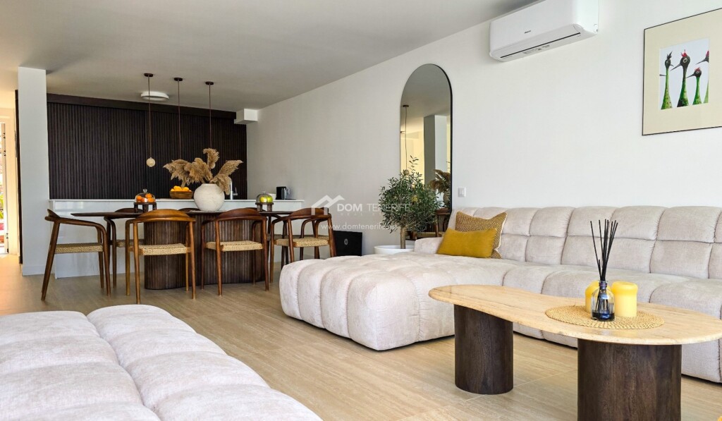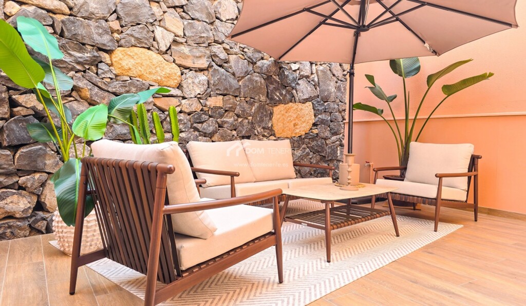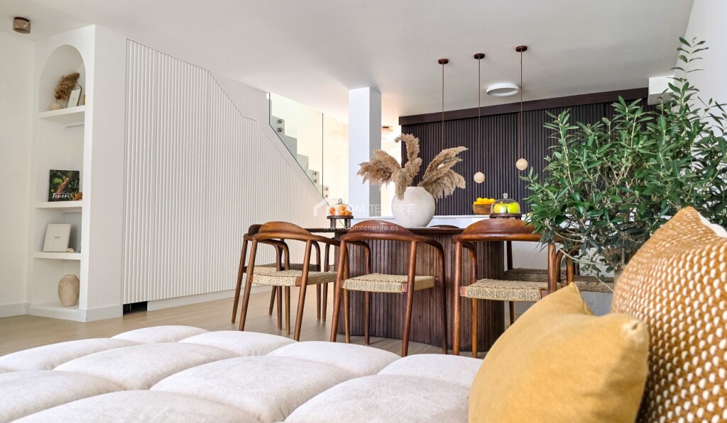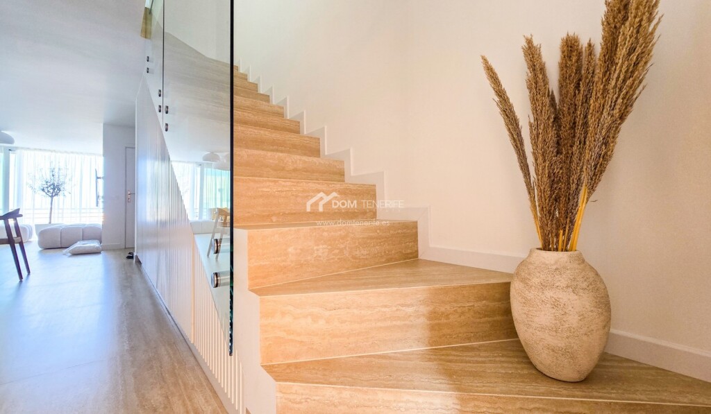 Adosado de diseño en El Madroñal, Costa Adeje mdash; calidad excepcional en cada rincón Ubicado en una zona tranquila y residencial, a los pies de la colina de Costa Adeje, este adosado reformado con gusto es una joya para quienes valoran el diseño, la calidad de los materiales y una ubicación estratégica. La vivienda ha sido completamente renovada, con una redistribución de espacios pensada para maximizar la funcionalidad y la luz natural. Dispone de tres terrazas orientadas al este y al oeste, lo que permite disfrutar del sol durante todo el día, ya sea con un café por la mañana o contemplando la puesta de sol sobre La Gomera al final del día.La propiedad cuenta con reforma integral con renovación de tuberías y sistema eléctrico, ventanas con aislamiento acústico, sistema de agua caliente mediante termo con placa solar en el tejado, suelo de piedra natural travertino de gran formato, encimera de cocina de piedra fundida y muebles con electrodomésticos integrados, puertas y mobiliario de madera natural, importados especialmente desde la península y otros países europeos, iluminación y decoración de autor con piezas en travertino, mesa de comedor y sillas de madera maciza, aire acondicionado instalado, filtro de agua potable etc. La vivienda forma parte del residencial privado Los Girasoles, en la zona de El Madroñal, a solo 5 minutos caminando del prestigioso Colegio Internacional Costa Adeje y muy cerca de un moderno centro deportivo y spa. Las playas de Fañabé, El Duque y Torviscas están a solo 6-9 minutos en coche. El entorno es perfecto para familias, incluyendo las que tienen mascotas, gracias a la cercanía de zonas verdes, y ofrece una excelente comunidad vecinal. Una casa para vivir con estilo, calma y calidad. Esta propiedad puede ser tuya. Contáctanos hoy mismo y agenda tu visita.