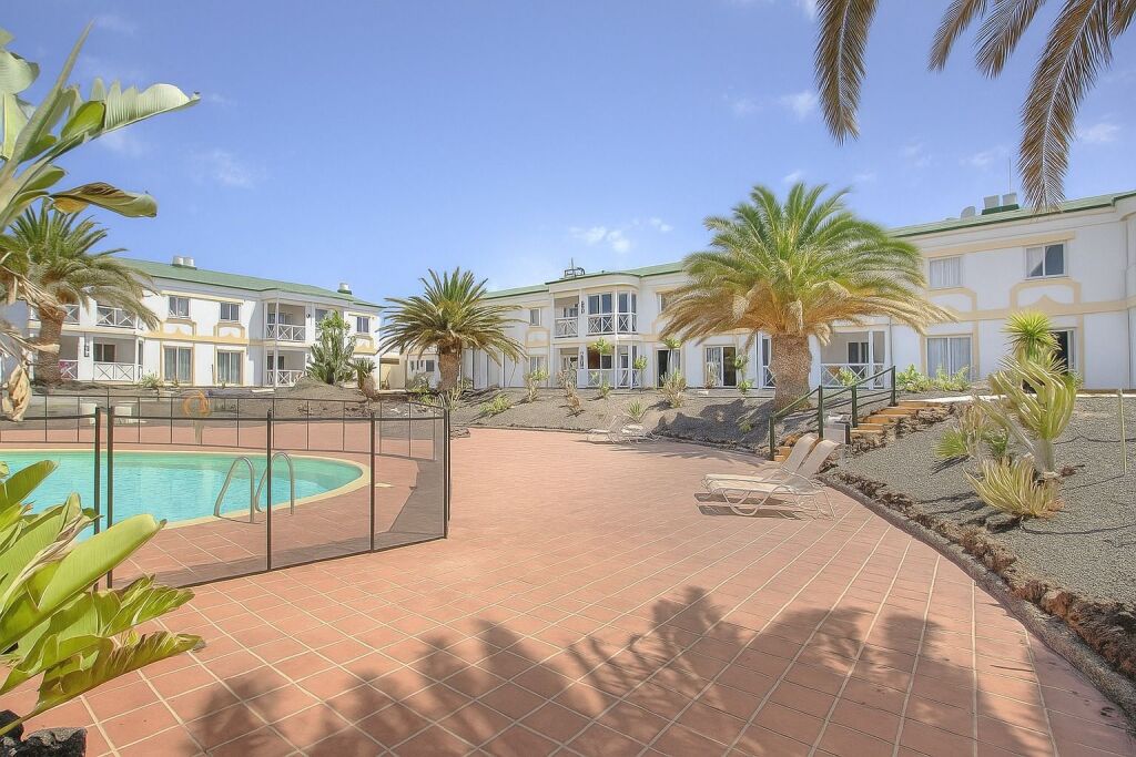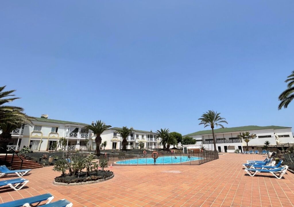 El complejo ofrece una piscina comunitaria rodeada de zonas para relajarse y tomar el sol, creando un ambiente ideal para descansar.