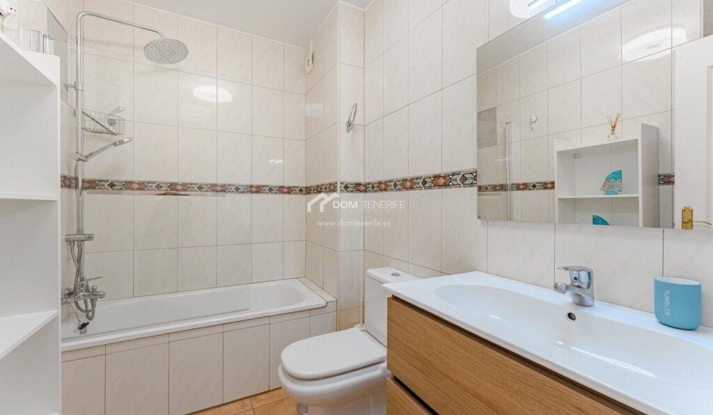 Ático moderno de un dormitorio en el complejo Albatros, Playa Paraíso, Adeje. Esta luminosa propiedad ofrece 100 m² de superficie, incluyendo 50 m² interiores con un dormitorio doble, un baño completo y una cocina americana abierta a un salón luminoso con acceso a la terraza. Disfrute de la vida al aire libre en una terraza principal de 10 m² y una impresionante azotea privada de 40 m² con vistas despejadas, perfecta para relajarse o recibir invitados. Ubicada en un complejo residencial tranquilo y bien cuidado con piscina comunitaria, jardines y aparcamiento cubierto. A poca distancia a pie de restaurantes, tiendas y del Hard Rock Hotel. Excelente conexión con Costa Adeje, La Caleta y Golf Costa Adeje. No se permite licencia VV (alquiler vacacional). Ideal como vivienda habitual o segunda residencia en el sur de Tenerife. Gastos de comunidad: 98 €/mes – IBI: 163 €/año.