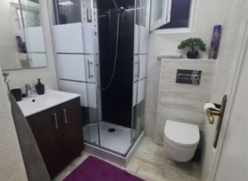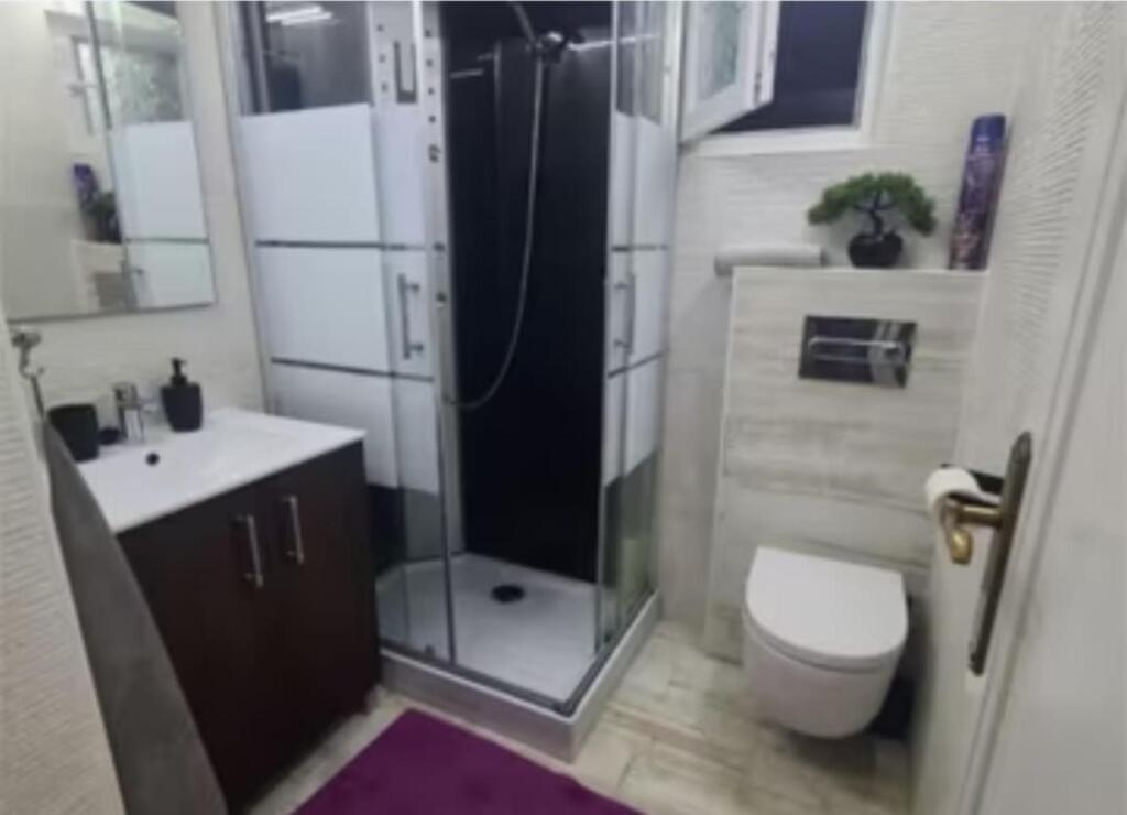 Baño renovado con plato de ducha y sanitarios nuevos