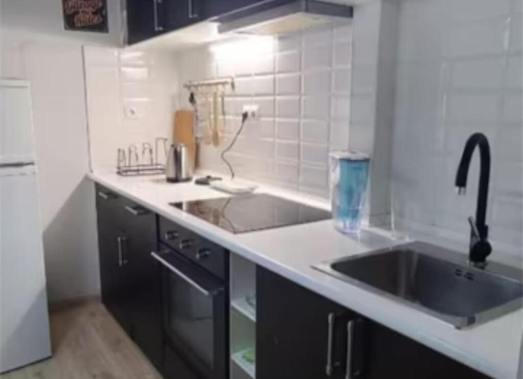 Cocina moderna totalmente equipada: lavavajillas empotrado, placa de inducción, horno eléctrico, lavadora y termo de 80L