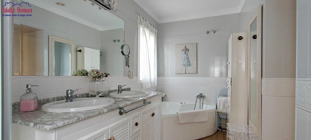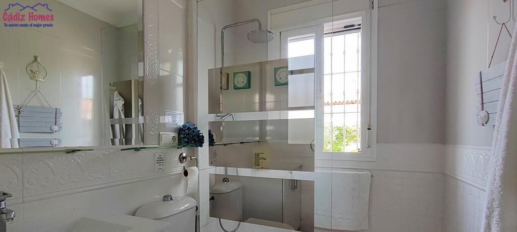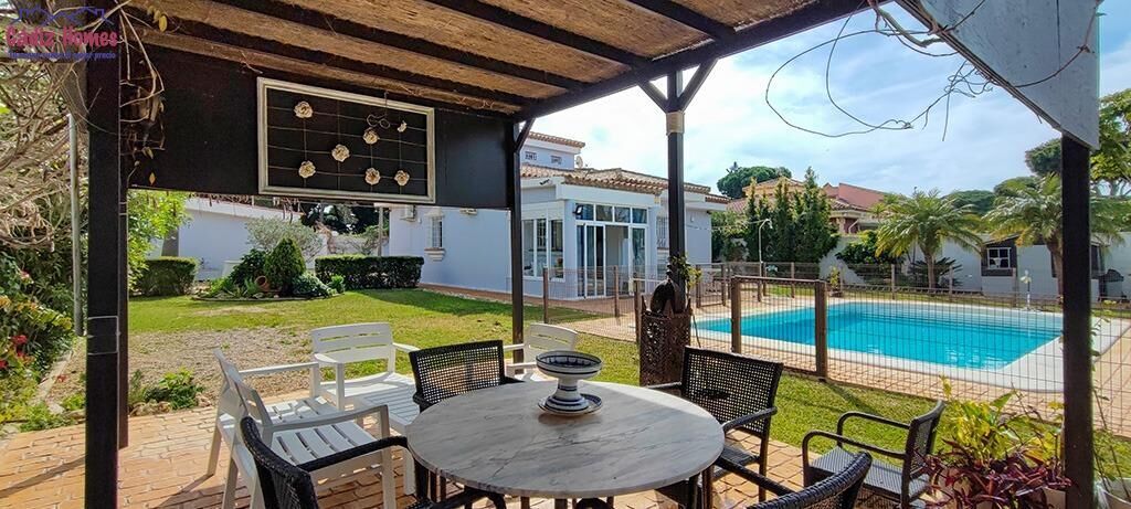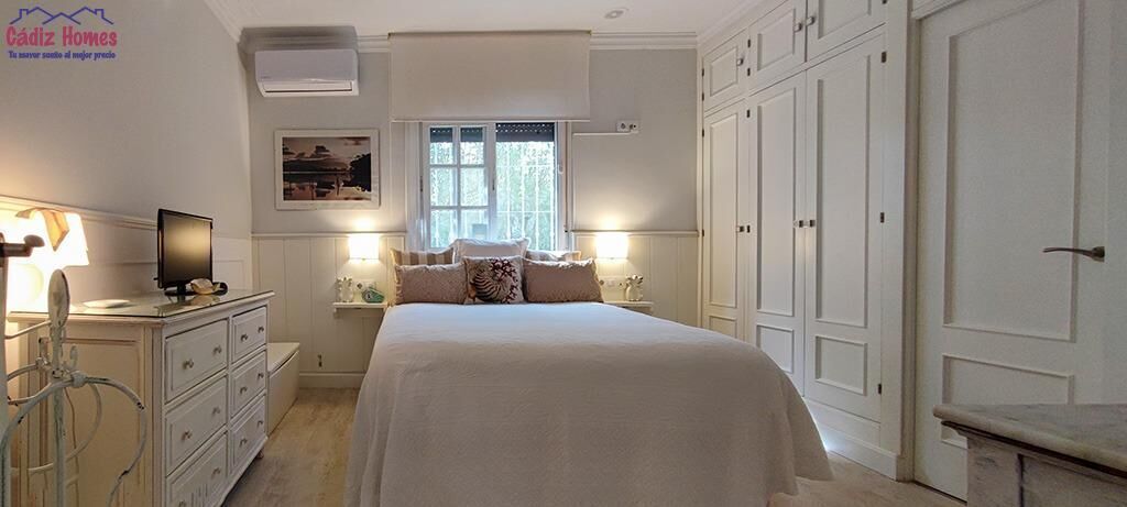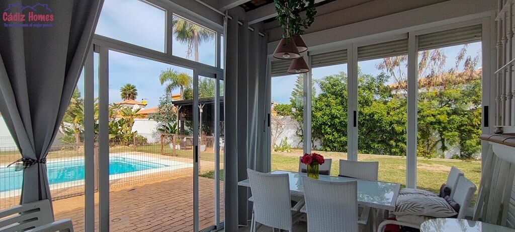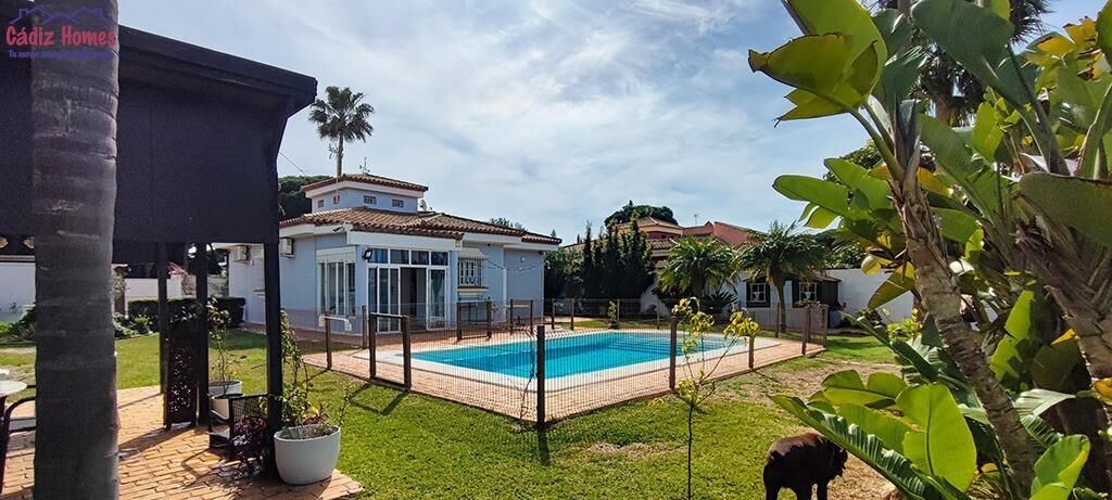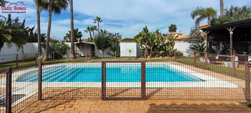 Inmobiliaria "Cádiz Homes" les presenta este magnífico chalet independiente, ubicado en Sancti Petri, a solo 600 metros de la famosa playa de La Barrosa.La vivienda se encuentra en una amplia parcela de 1.040 m² y cuenta con un impresionante hall de entrada que destaca por su doble altura. El luminoso salón-comedor está equipado con ventanales que ofrecen vistas al jardín y dispone además de una acogedora chimenea funcional para disfrutar durante los días de invierno.El chalet alberga tres espaciosas habitaciones, una de ellas en formato suite equipada con baño privado completo incluyendo jacuzzi, así como otro segundo cuarto de baño adicional para mayor comodidad. Los armarios empotrados y el amplio espacio destinado al almacenamiento garantizan organización en cada rincón del hogar.La cocina es totalmente moderna e incluye todos los electrodomésticos necesarios, comunicándose directamente a un encantador porche cerrado acristalado perfecto para reuniones familiares o comidas informales.En cuanto a las instalaciones exteriores, encontramos un garaje cerrado capaz para tres vehículos (aproximadamente 45 m²), junto a áreas adicionales destinadas tanto al cuidado del jardín como el mantenimiento. Esta propiedad también dispone de piscina privada (32 m²) completamente vallada por motivos seguridad infantil, siendo un lugar ideal donde relajarse bajo el sol andaluz.Un cenador situado dentro del espléndido jardín permite aprovechar aún más esos momentos especiales rodeados de naturaleza. La automatización del riego facilita cuidados regulares sin complicaciones. Además todo ha sido construido utilizando materiales de máxima calidad asegurando durabilidad y estética. Este espectacular inmueble incorpora aire acondicionado frío/calor así como placas solares contribuyendo así a la eficiencia energética de la vivienda. Solicite información detallada hoy mismo.* Gastos de compra, honorarios e impuestos no incluidos en el precio.* Para conocer otras oportunidades, visite nuestra web cadizhomes.es donde podrá encontrar una amplia variedad de viviendas disponibles cuidadosamente seleccionadas...