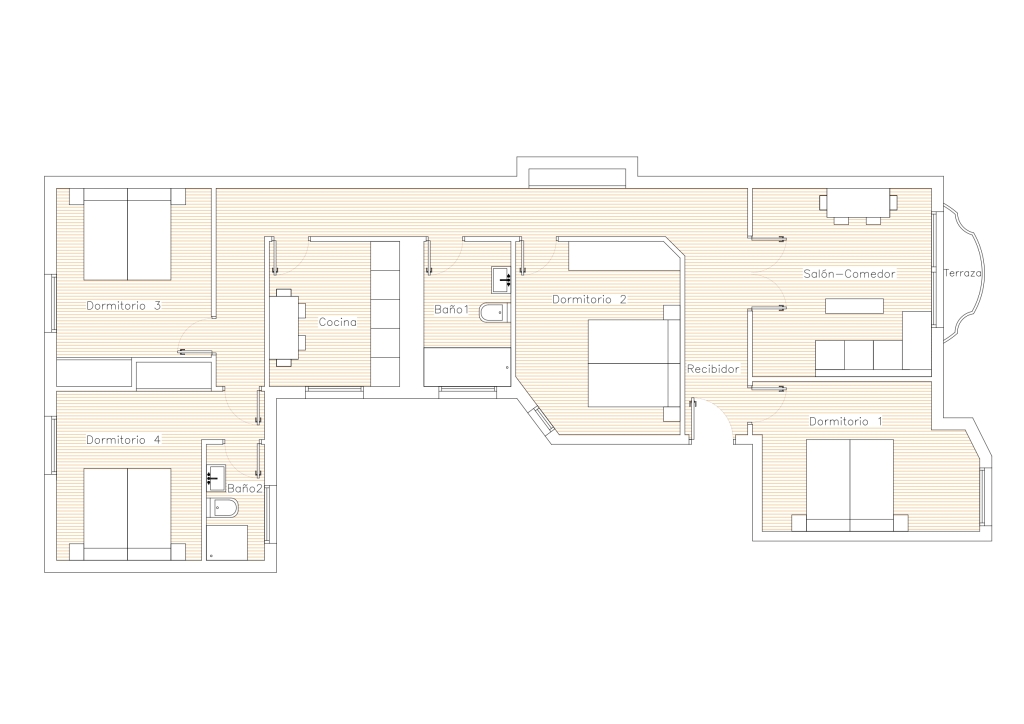CENTRO - Piso de 121 m2 distribuidos en 4 dormitorios, salón, cocina y 2 baños. Dispone de terraza. Calefacción central y agua caliente central con contador individual. Semiexterior. Ascensor cota 0.