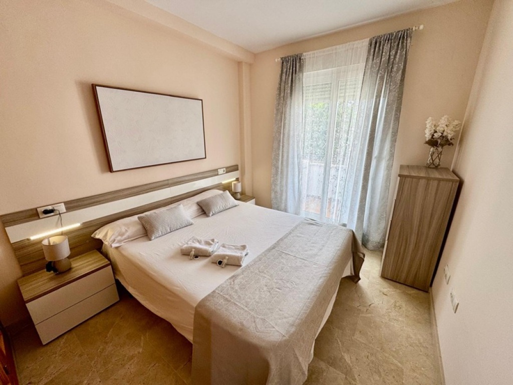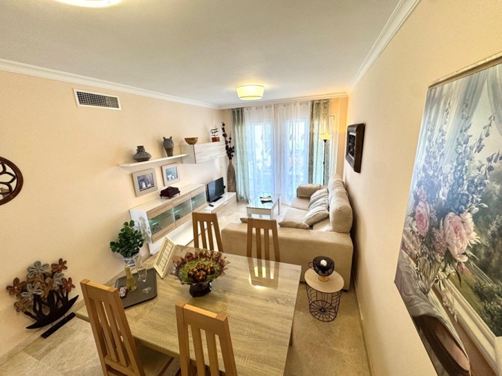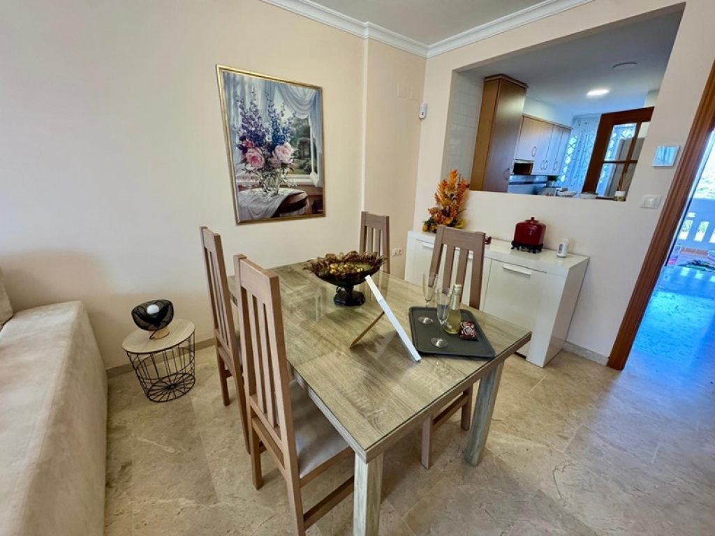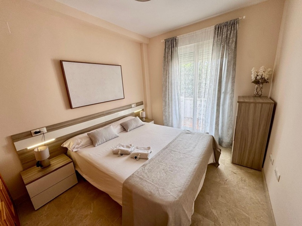 Este luminoso apartamento cuenta con dos amplios dormitorios, uno de ellos con baño en suite, ofreciendo un espacio privado y tranquilo. La cocina independiente con pasaplatos es ideal para los amantes de la cocina, conectando de manera práctica con el salón-comedor. Desde allí, el acceso a la gran terraza privada te permite disfrutar del aire libre y de las impresionantes vistas al Mediterráneo, un lugar perfecto para relajarse en cualquier momento del día.