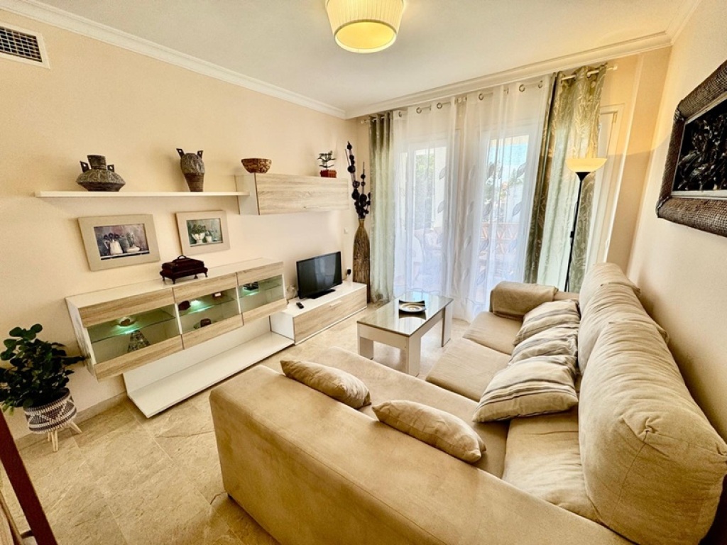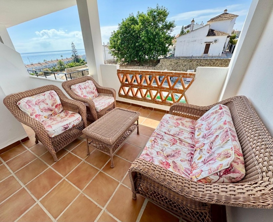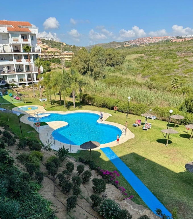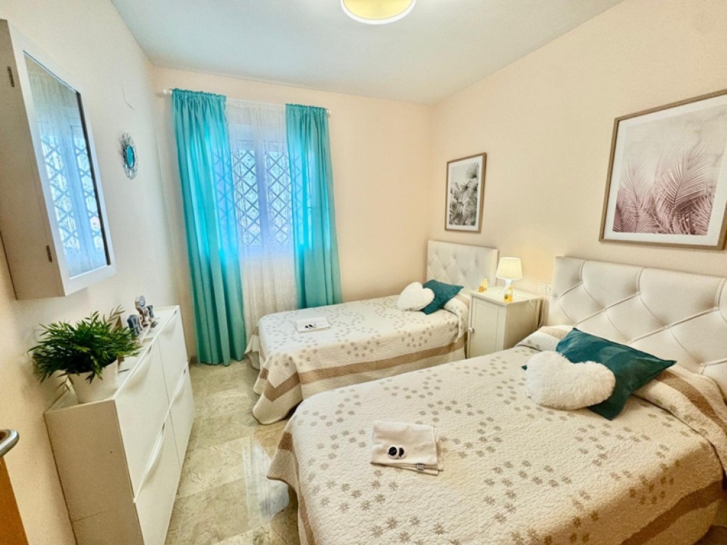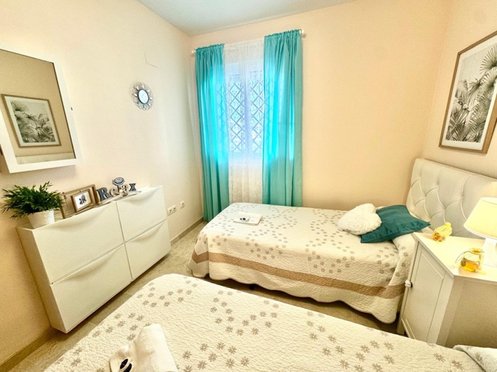 Este luminoso apartamento cuenta con dos amplios dormitorios, uno de ellos con baño en suite, ofreciendo un espacio privado y tranquilo. La cocina independiente con pasaplatos es ideal para los amantes de la cocina, conectando de manera práctica con el salón-comedor. Desde allí, el acceso a la gran terraza privada te permite disfrutar del aire libre y de las impresionantes vistas al Mediterráneo, un lugar perfecto para relajarse en cualquier momento del día.