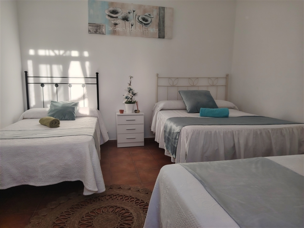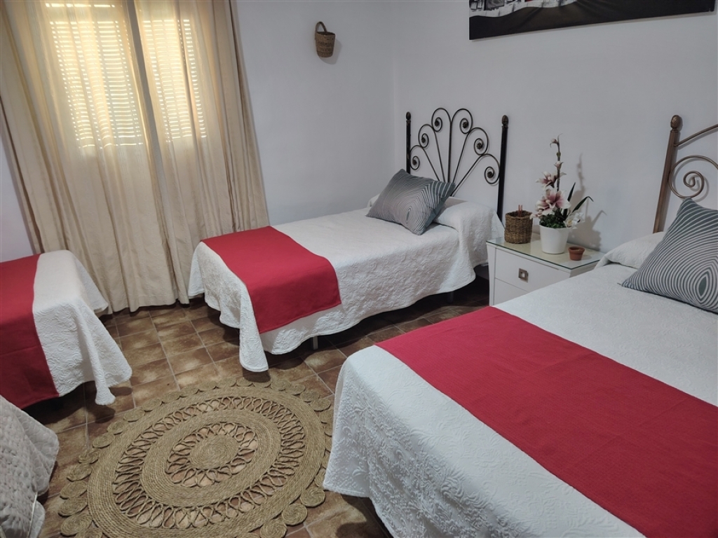 Casa de 200 m² en una sola planta, con salón con chimenea, cocina-comedor de estilo rústico totalmente funcional, cinco dormitorios amplios y dos baños con ducha. Dispone de aire acondicionado.