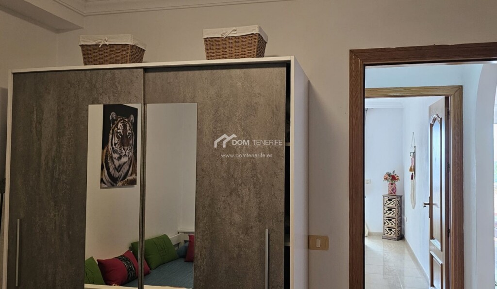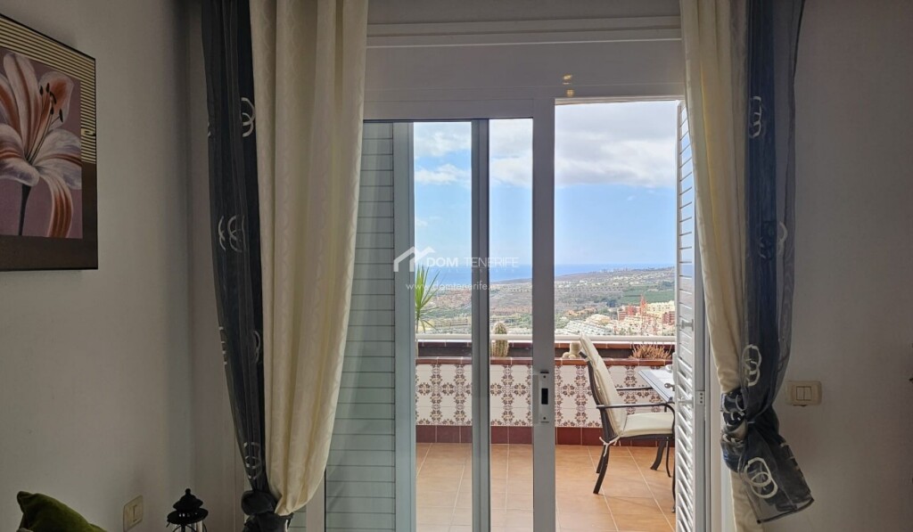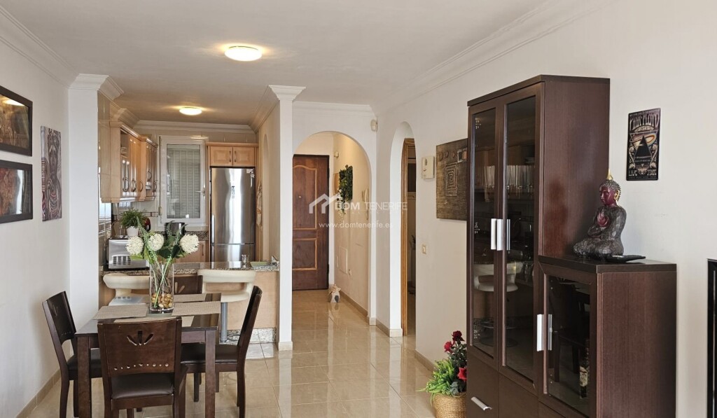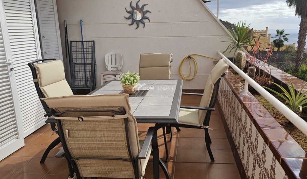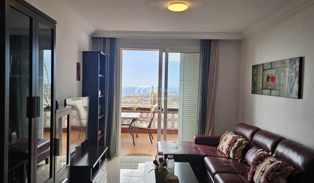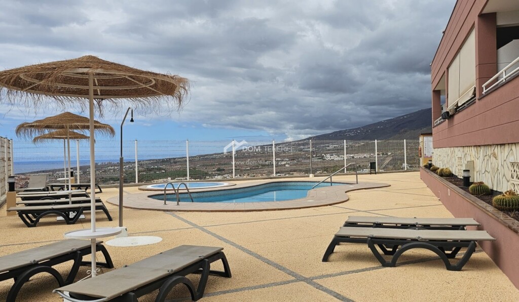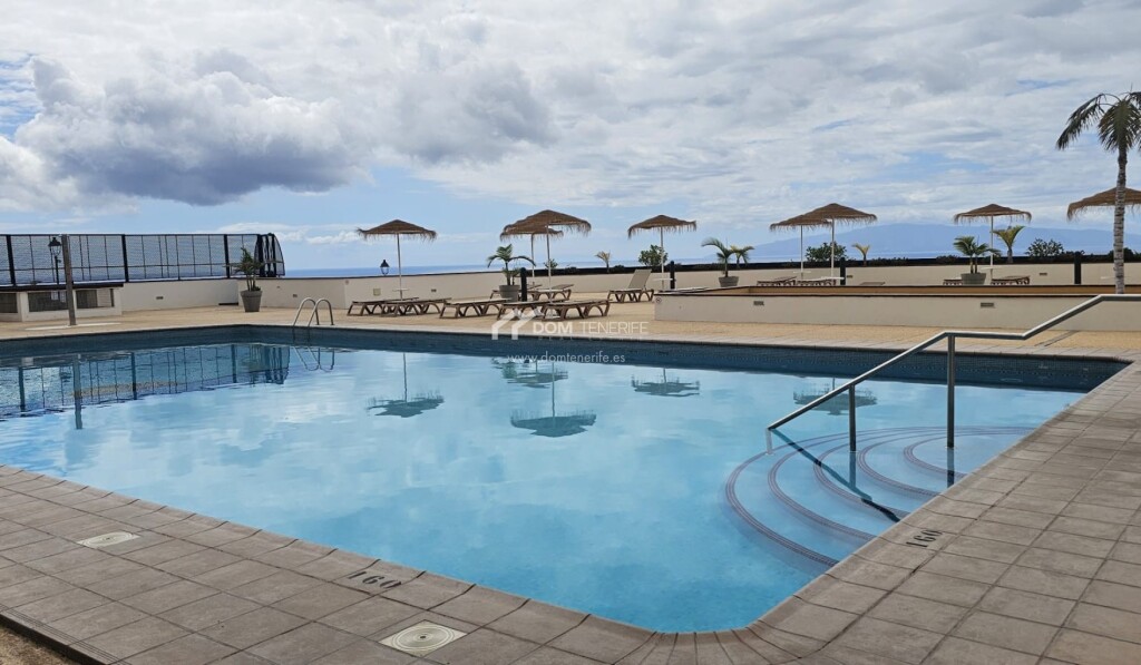 Dom Tenerife Inmobiliaria le presenta este luminoso apartamento ubicado en el exclusivo complejo residencial “The Sunset”, en Roque del Condea poca distancia de la emblemática Playa del Duque. El complejo, impecablemente mantenido y de carácter tranquilo, dispone de tres piscinas comunitarias, una de ellas climatizada, que ofrecen impresionantes vistas panorámicas al océano. La vivienda, situada en esquina, goza de una distribución óptima y cuenta con dos dormitorios con armarios empotrados. El dormitorio principal tiene acceso directo a la amplia terraza y dispone de un baño en suite con ducha. La cocina americana, completamente equipada, se integra de forma funcional en el espacio. Desde el amplio y luminoso salón-comedor se accede a la magnífica terraza, desde la cual se puede disfrutar de espectaculares vistas al mar, a la isla de La Gomera y a las montañas. La propiedad tiene una superficie construida de 82 m² y una terraza de 24 m². Como valor añadido, incluye un garaje cerrado de 20 m² en la planta subterránea del edificio y un trastero de 10 m². El apartamento está parcialmente renovado, y se vende amueblado y decorado. Una oportunidad única para disfrutar de la tranquilidad, el confort y las mejores vistas del sur de Tenerife!