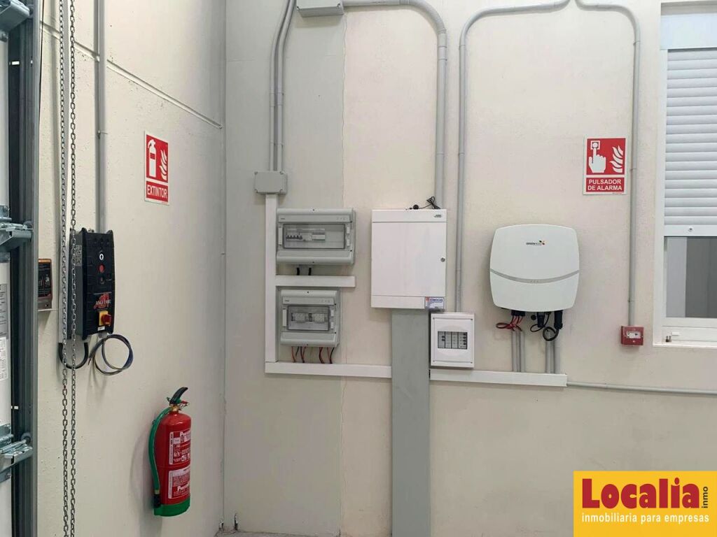 La nave está equipada con diversas medidas de seguridad, incluyendo extintores contra incendios y un pulsador de alarma, así como paredes ignífugas para garantizar la protección de sus instalaciones, aerotermia, radiadores eléctricos y señalética. Además, cuenta con una puerta automatizada que facilita la entrada y salida de camiones y vehículos de gran porte, lo que la convierte en una opción ideal para actividades logísticas y de almacenamiento.
